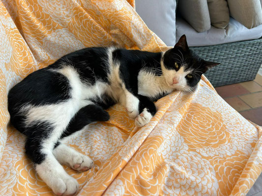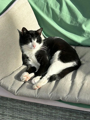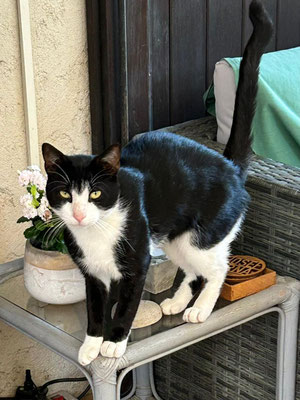 Le vétérinaire a dit que j’ai environ 2 ans. Je suis en bonne santé, et je m’entends bien avec les autres chats qui passent dans le jardin.