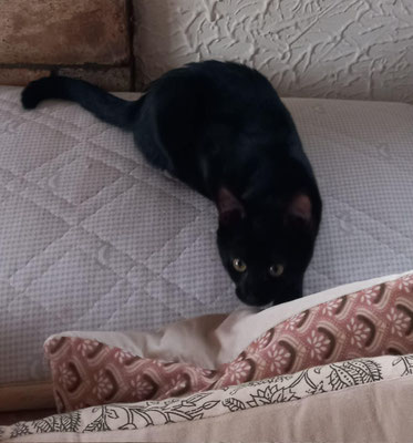 Je suis encore un peu impressionnée quand une nouvelle personne arrive et parfois même je souffle, mais c’est juste par peur, je ne suis pas agressive pour un sou! Mais je tends quand même la tête pour une caresse avant de filer me cacher un moment 🫣