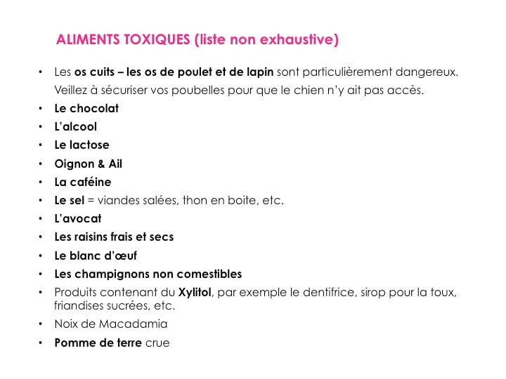 Sachez que si un aliment est qualifié comme toxique, cela dépend aussi de la fréquence et de la quantité ingérée. Les effets peuvent aller du simple trouble digestif à un état beaucoup plus grave, voir mortel.