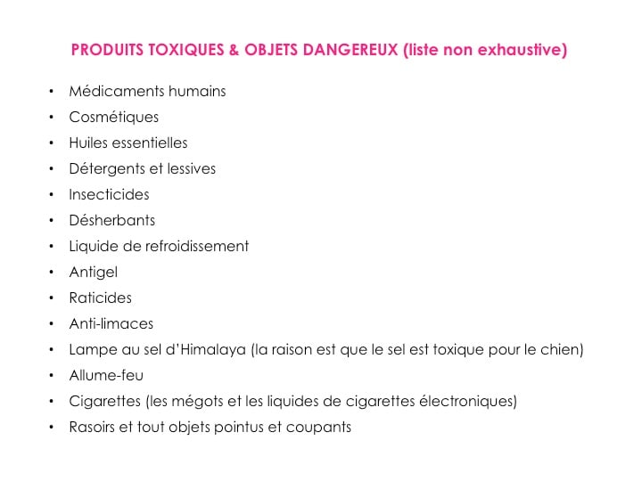 Mais si votre chien s’est avéré un peu trop curieux avec un produit/objet qui traine, il peut courir le risque d’être intoxiqué.