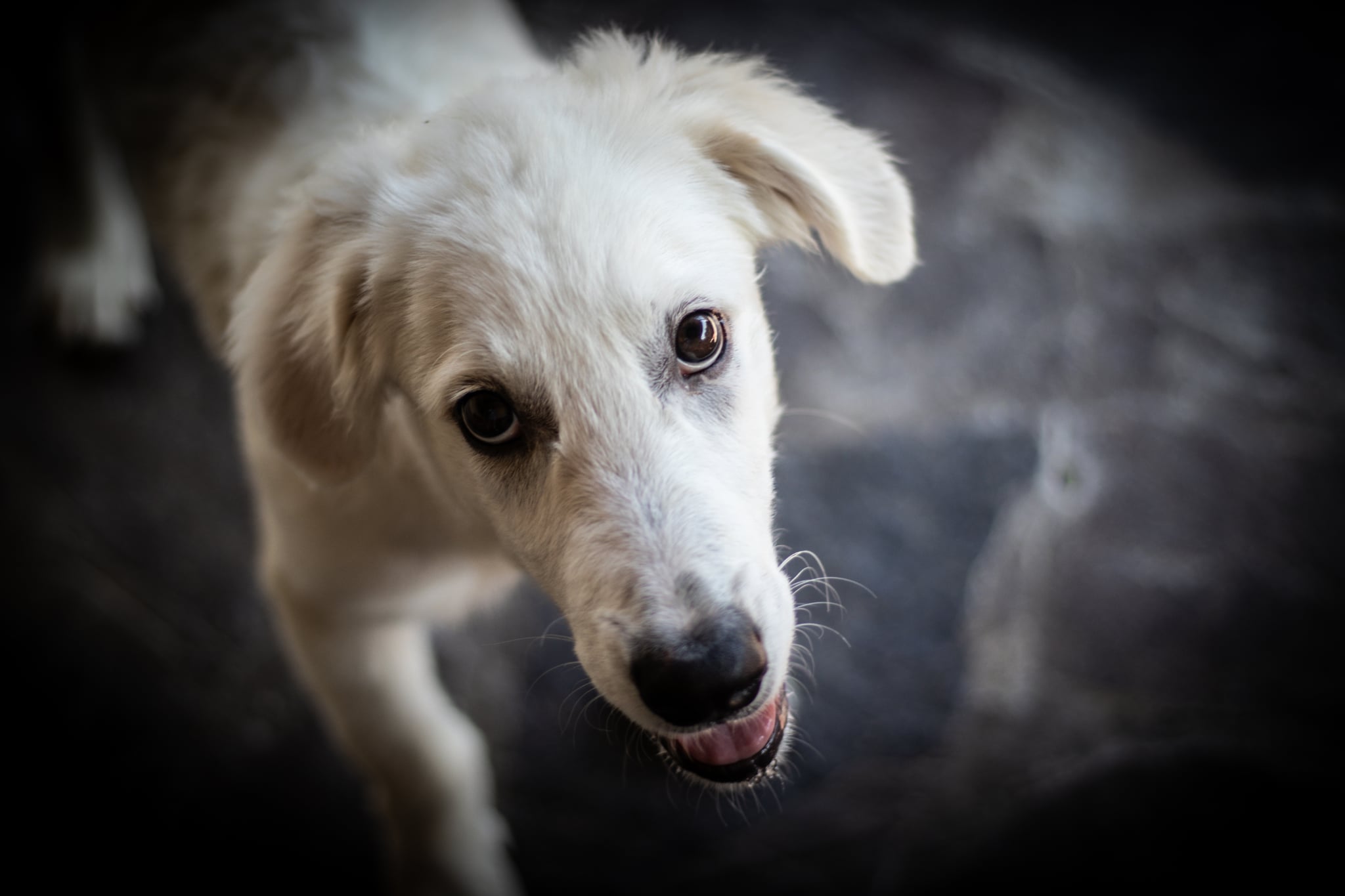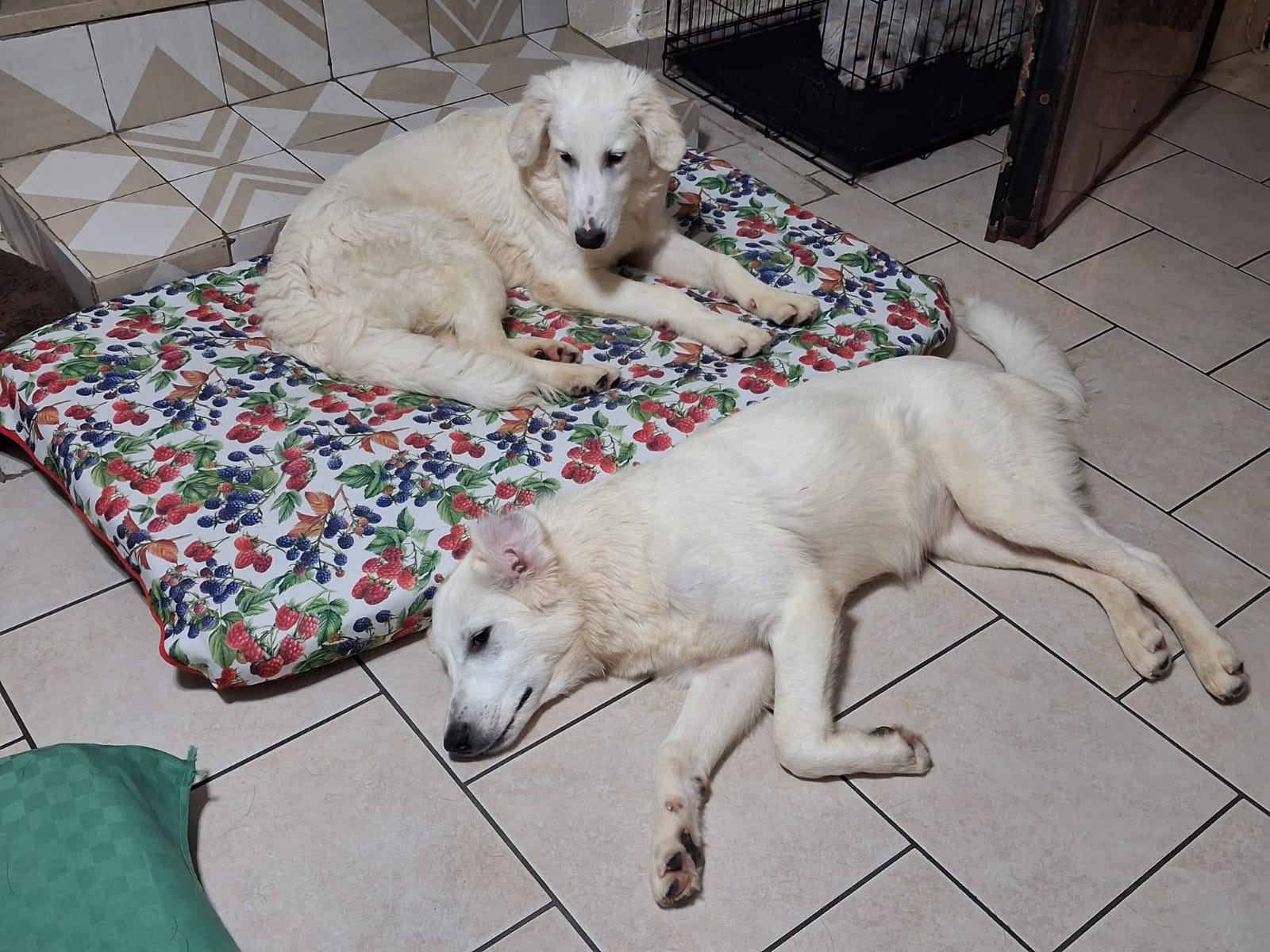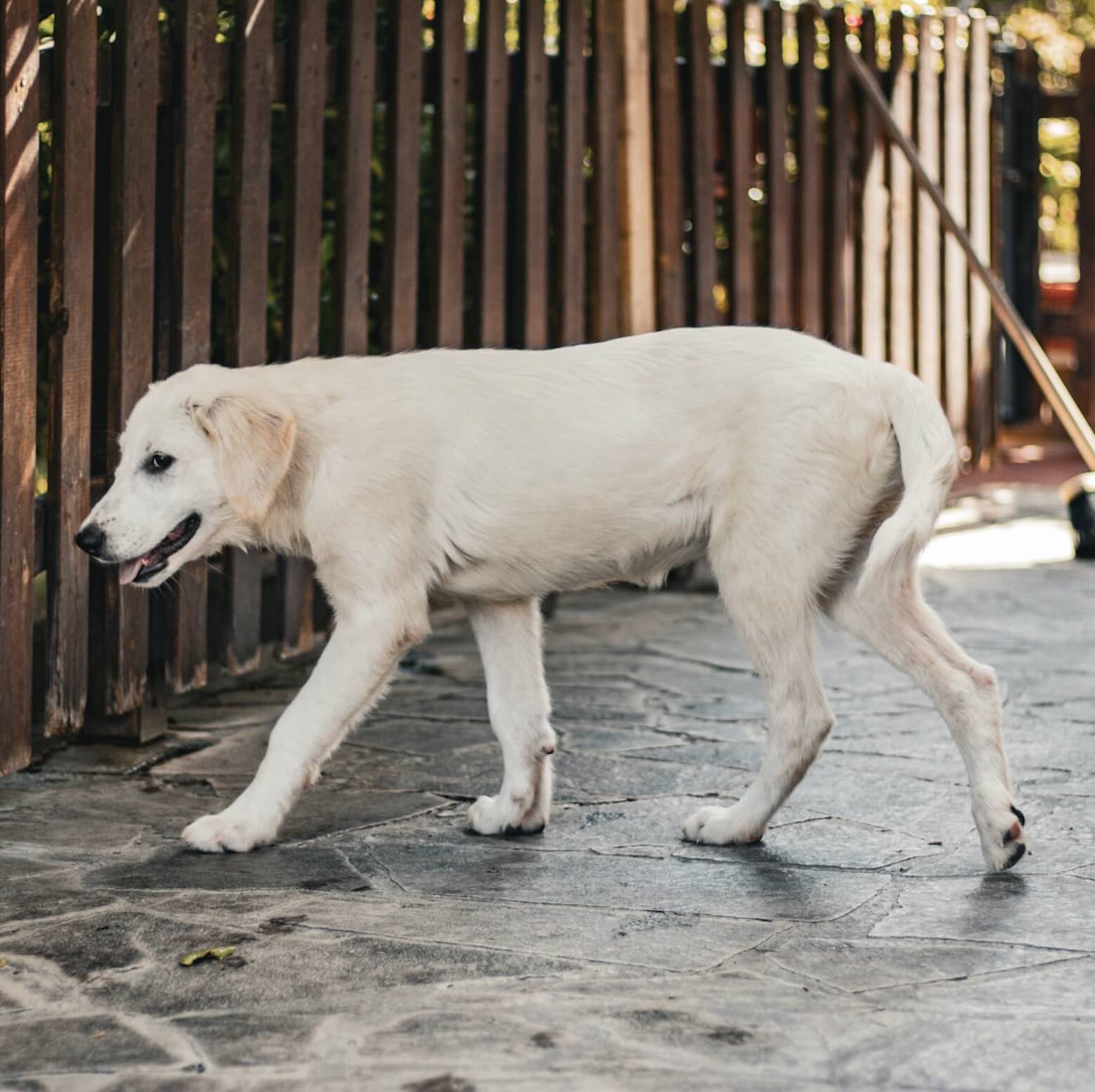 AIMEE est une chienne de type croisée Berger de Maremme, non lof, couleur blanche.