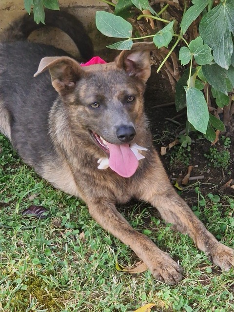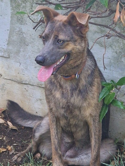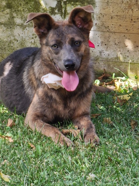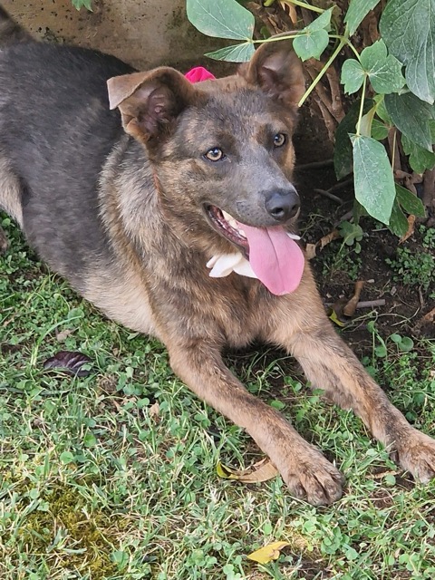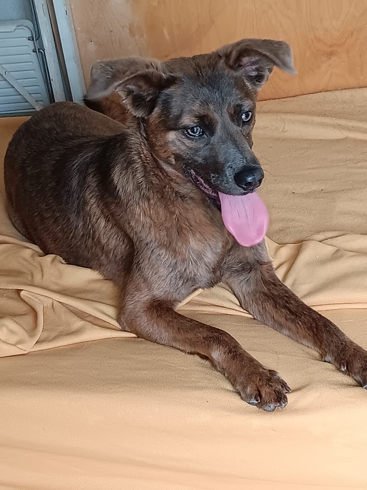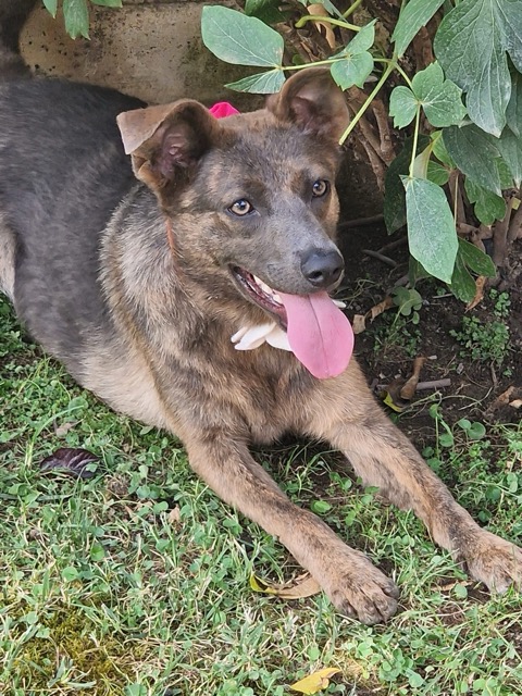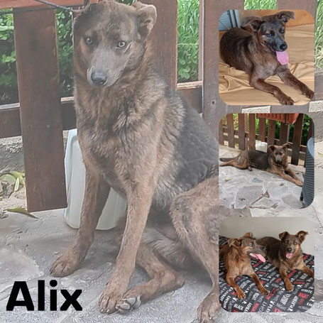 ALIX est une chienne de type croisée Berger, non lof, couleur marron charbonnée.
