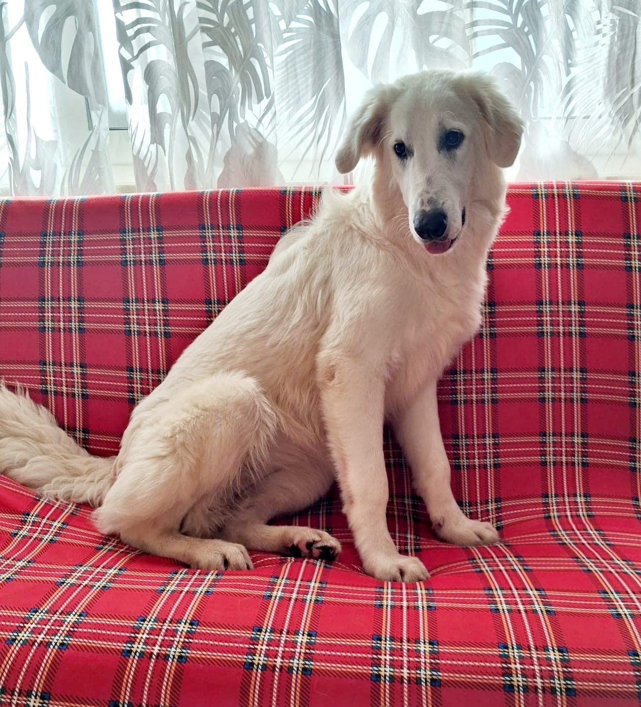 AMELIE est une chienne de type croisée Berger de Maremme, non lof, couleur blanche.