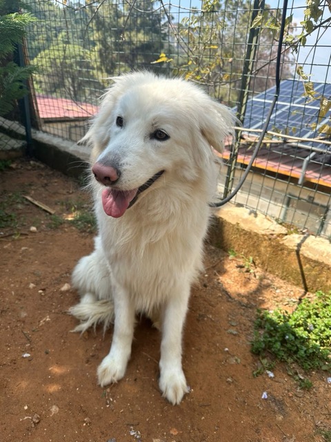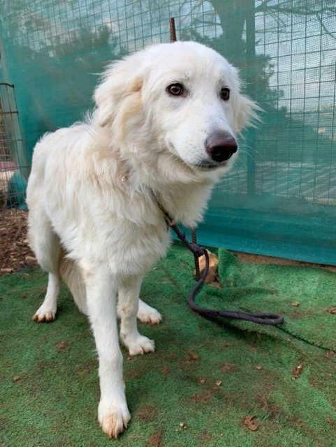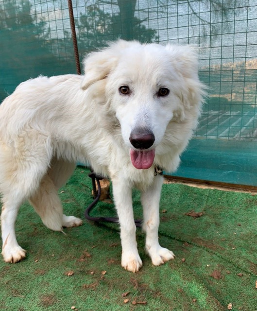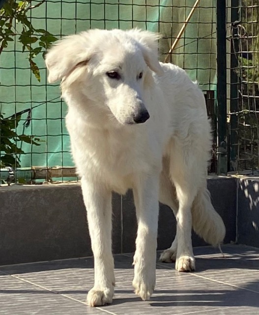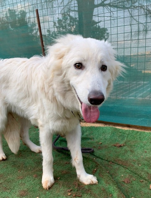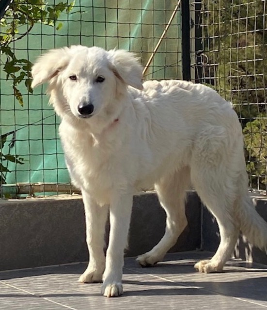 CANDICE est une chienne de type croisée Golden Retriever et berger, non lof, couleur blanc.