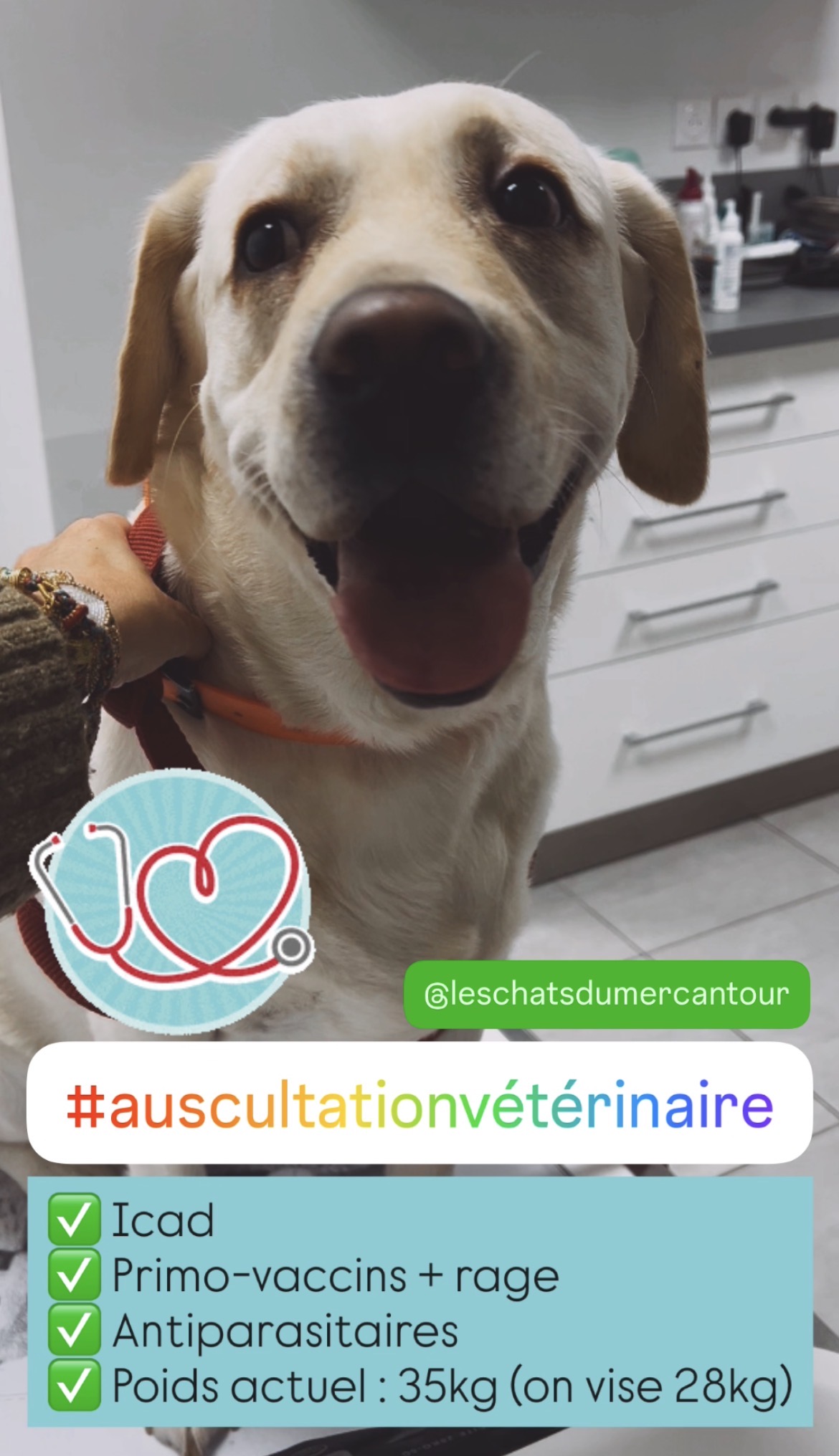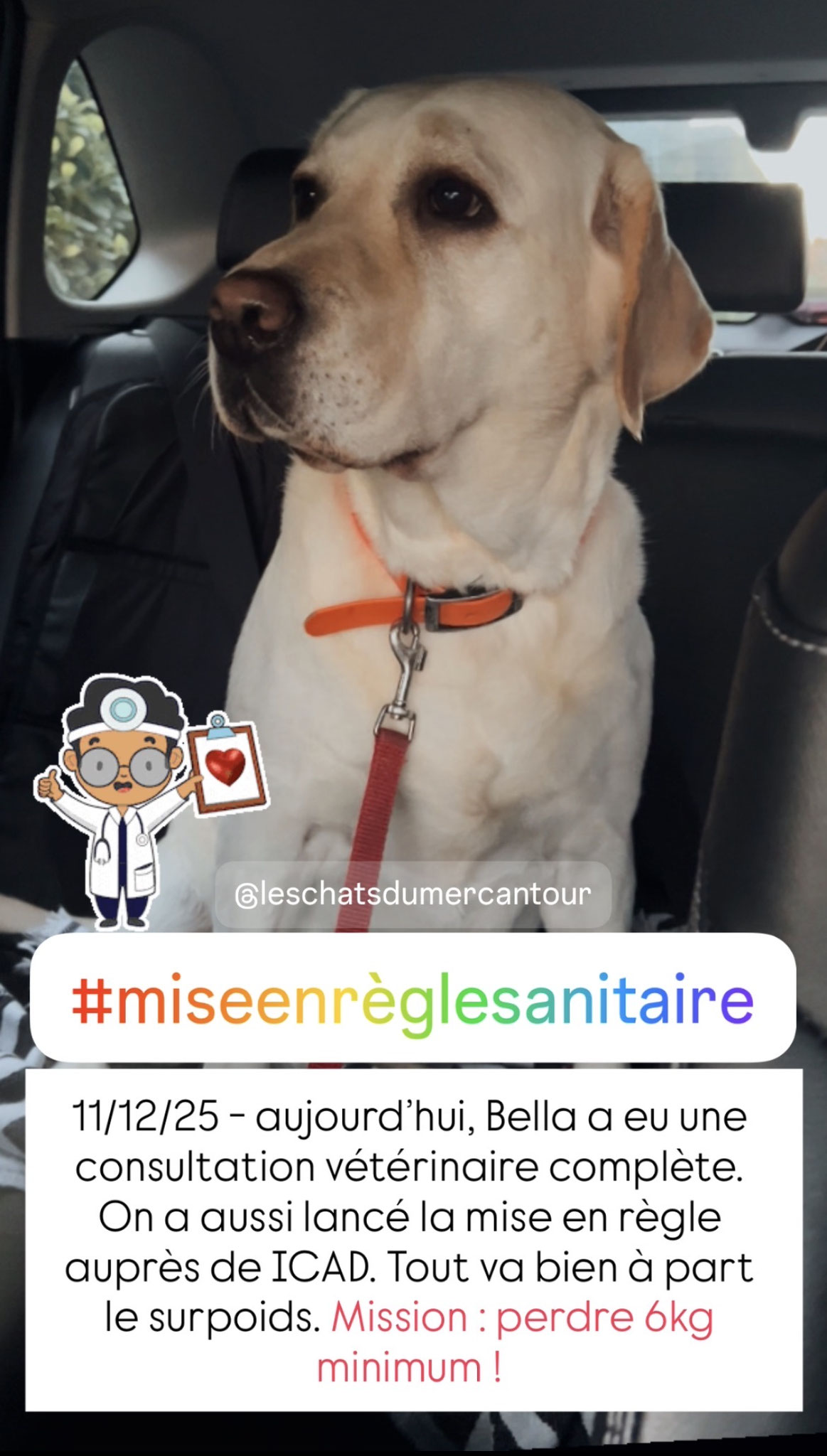 Sa date de naissance est le 6/1/2022 et pèse actuellement 35kg et doit absolument perdre 7kg environ.