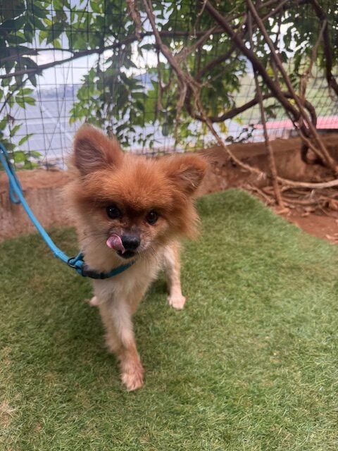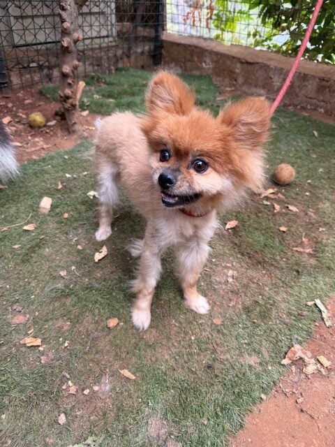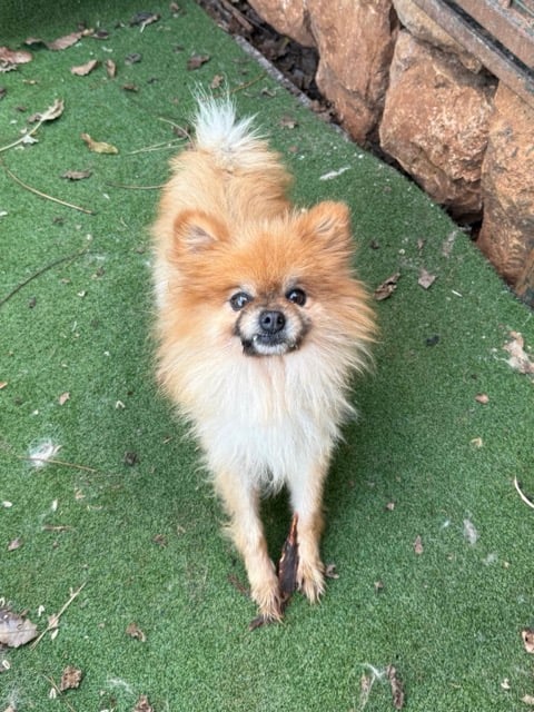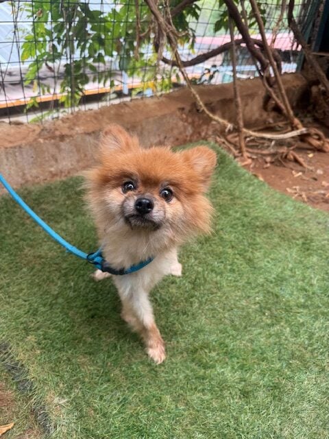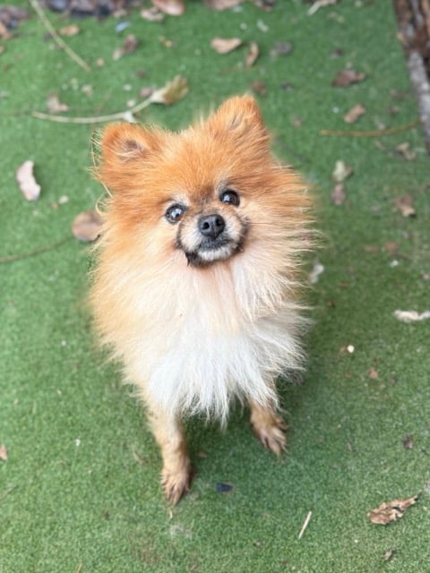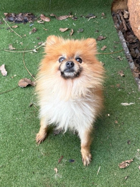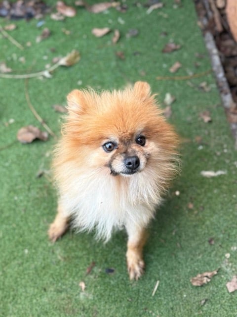 BLIP est un chien de type Spitz de Poméranie, non lof, couleur fauve.