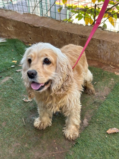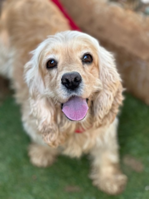 CLAUDIA est une chienne de race Cocker Anglais, non lof, couleur fauve.