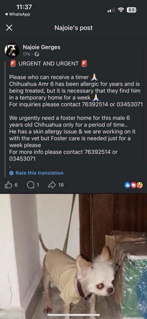 *Ce chien est actuellement au Liban et ne sera rapatrié en France, dans le 06, que lorsqu'une famille d’accueil ou d'adoption se proposera de l’accueillir. La date du rapatriement dépendra de la disponibilité des vols. Merci donc de faire preuve de compréhension et de patience