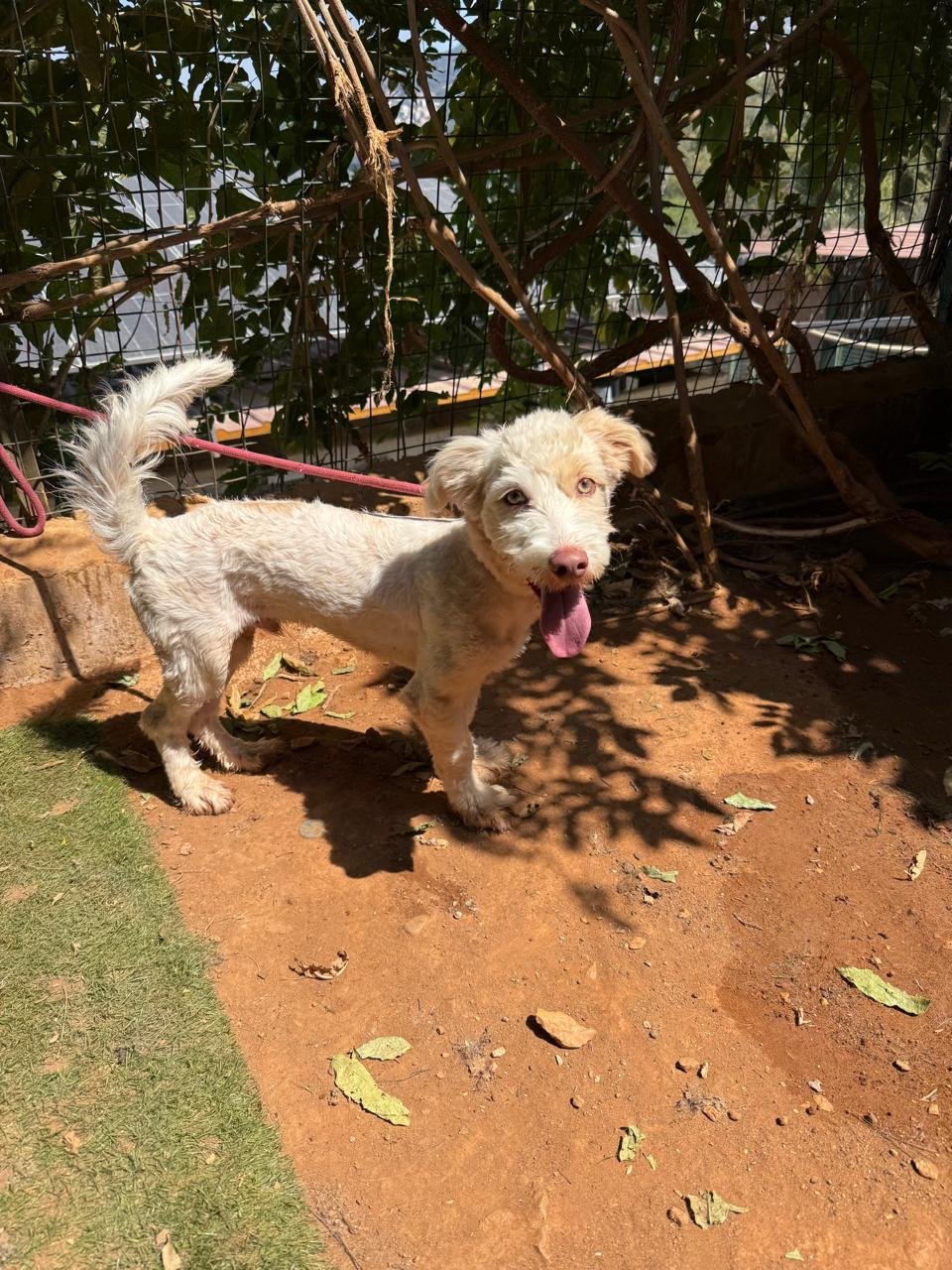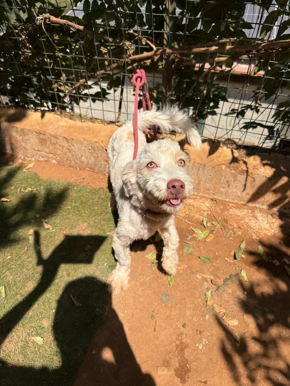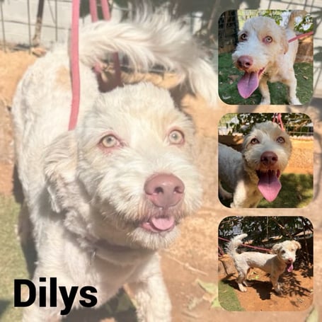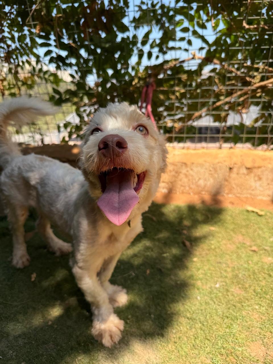 DILYS est un chien de type Terrier, non lof, couleur blanc et beige.