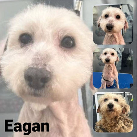 EAGAN est un chien de type Caniche, non lof, couleur crème.