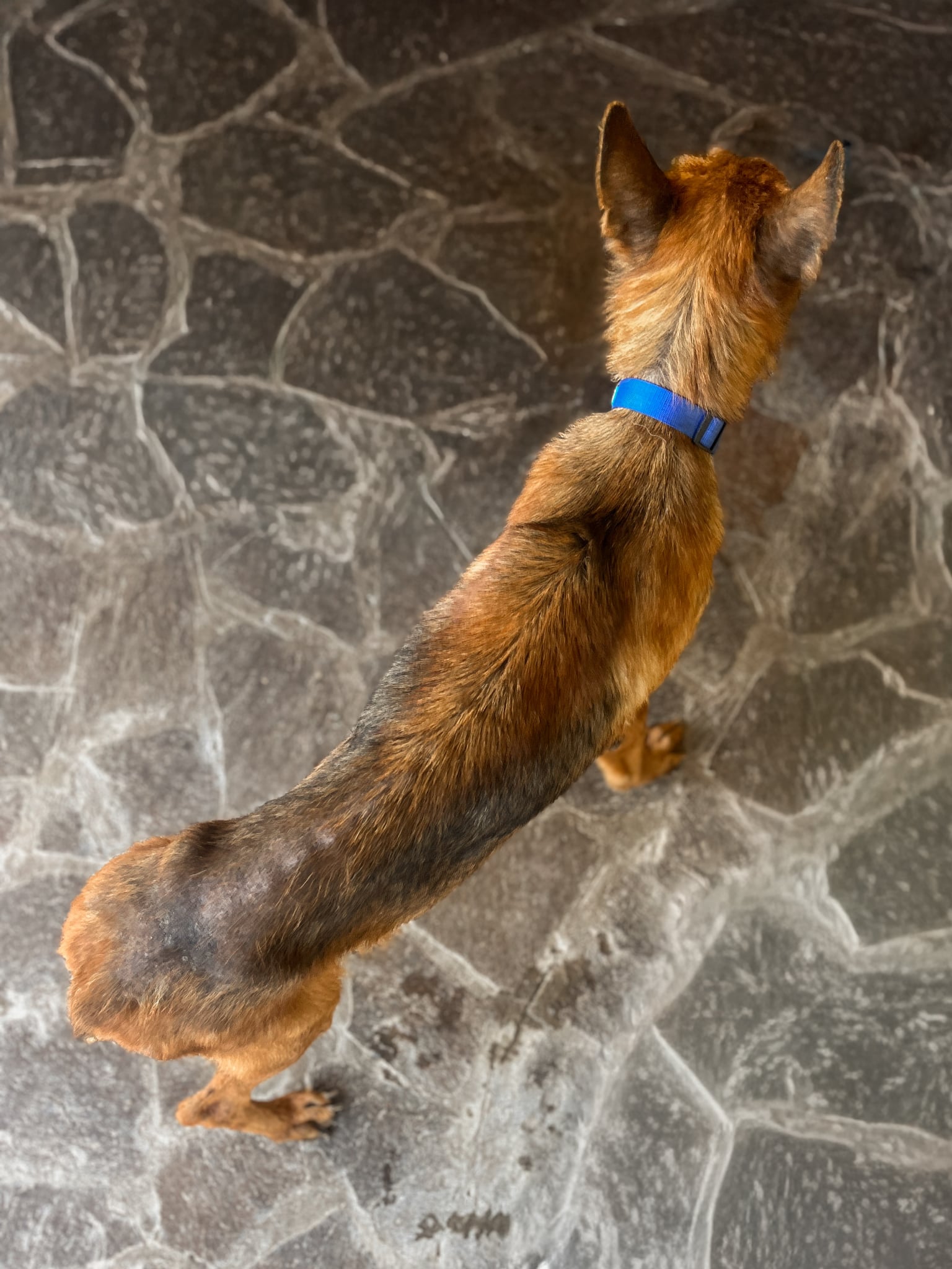 Sa date de naissance est estimée à 2019 et elle pèse environ 32kg (elle a pris 10kg depuis sa prise en charge.