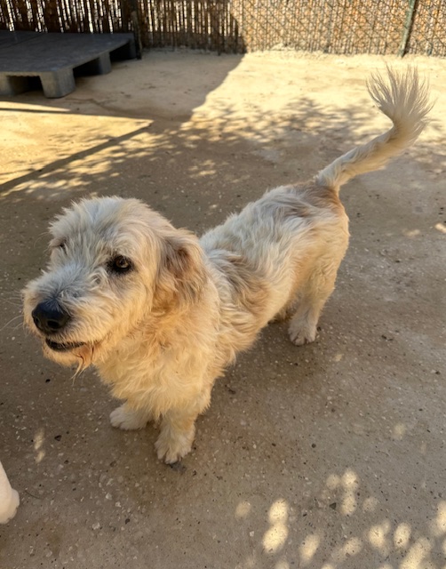 GIMLY est un chien de type croisé terrier, non lof, couleur blanc.