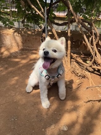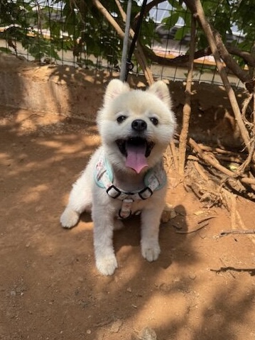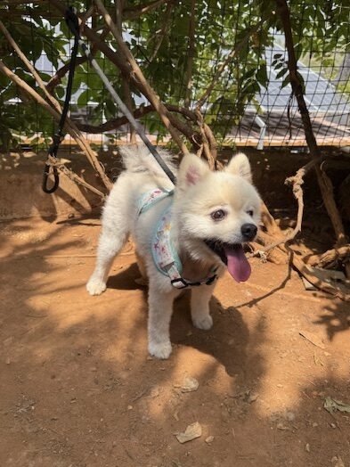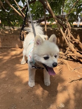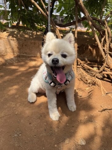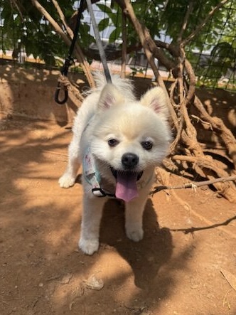 GOO est un chien de type Spitz de Poméranie, non lof, couleur crème.