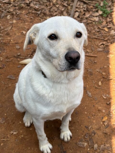 LOIS est une chienne de type croisée Labrador, non lof, couleur blanche.