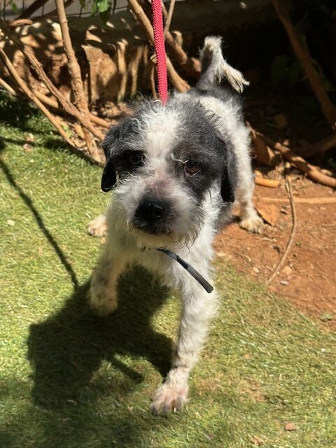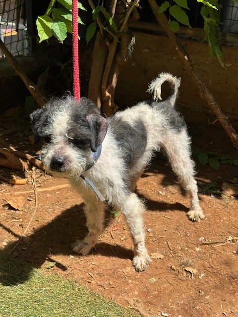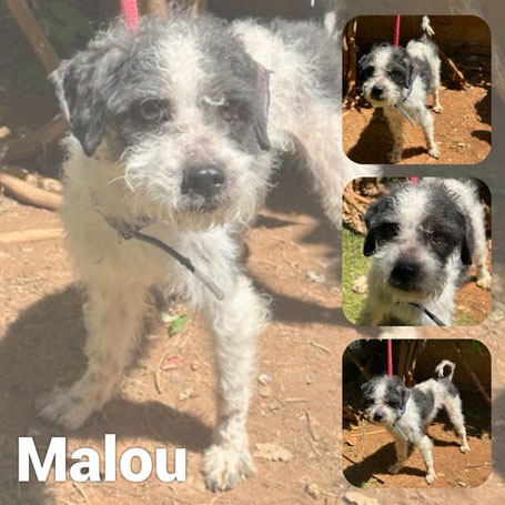 MALOU est un chien de type Terrier, non lof, couleur gris et blanc.