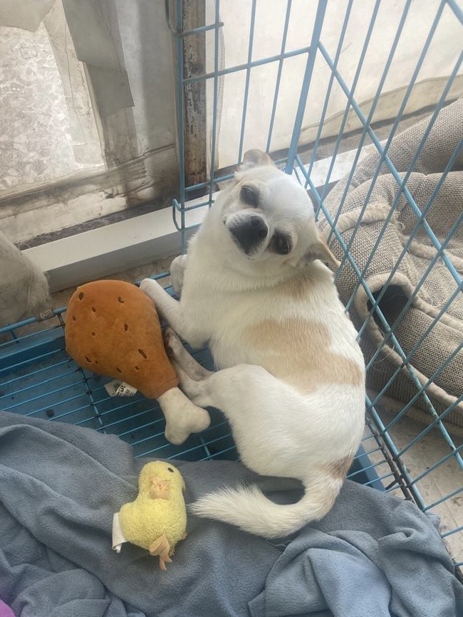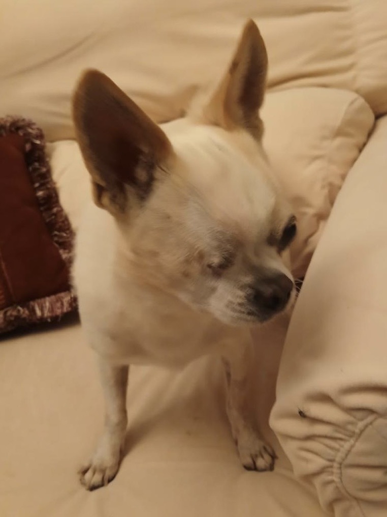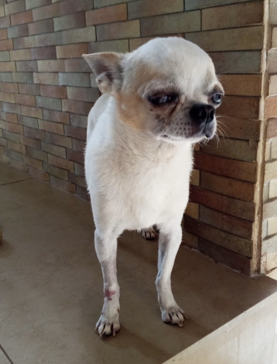 MAX est un chien de type Chihuahua, non lof, couleur blanc et beige.