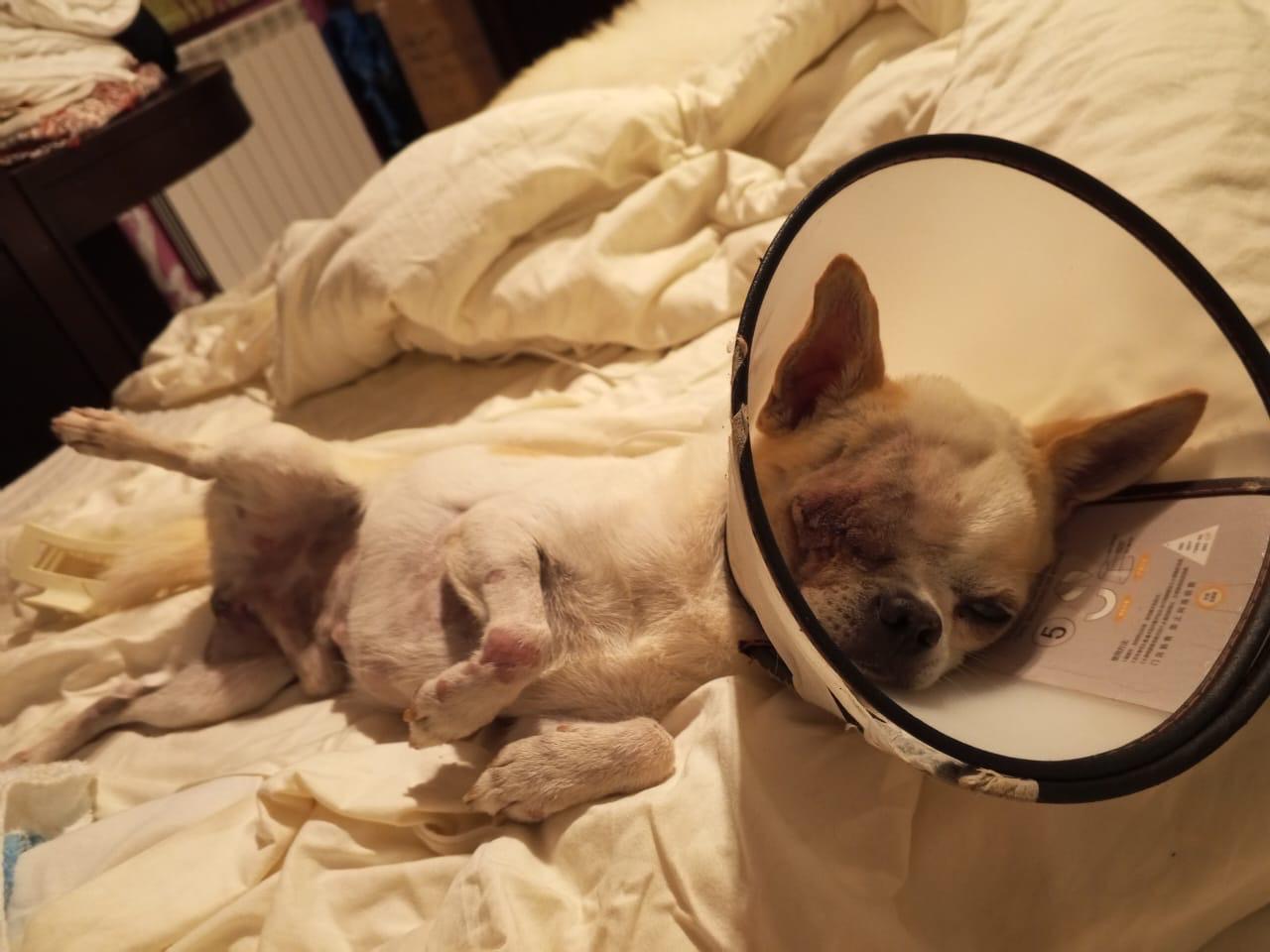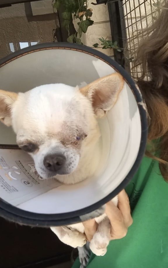 Il est borgne à la suite d’une blessure à l’œil droit non soigné. Il a un souffle au cœur qui sera mieux détaillé à son arrivée en France et son traitement sera adapté. Il a malheureusement été attaqué par un gros chien sans laisse et a été gravement blessé : il a subit 2 chirurgies pour soigner la luxation de la hanche et la hernie abdominale.