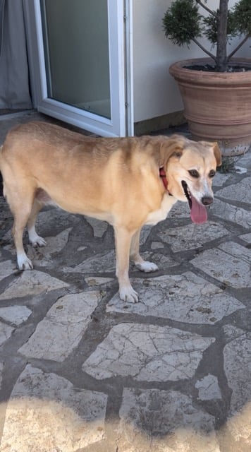 Sa date de naissance est estimée au 1/9/2018 et pèse environ 18kg mais elle est surpoids et devrait en peser 14.