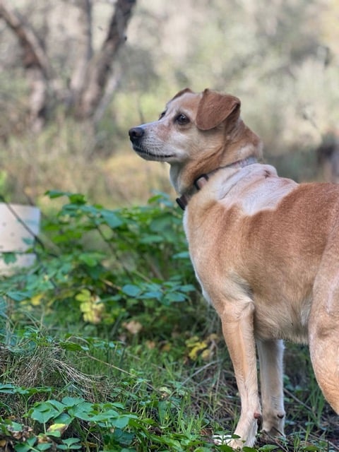 En balade, elle est dynamique et exploratrice sans jamais s’éloigner. Quasiment jamais en laisse, sage en voiture.
