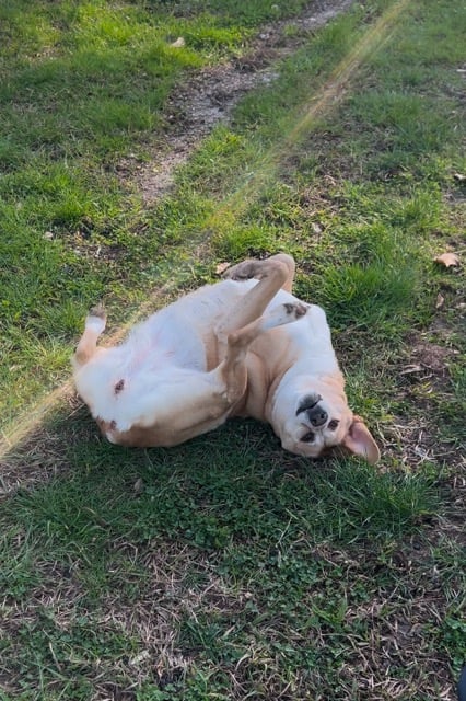 Malgré son apparence de rondouillette, elle parcourt des km sans problèmes, elle adore ça et elle en a besoin. Renifler les odeurs de la nature, c’est sa passion. Elle a besoin de balader dans la verdure quotidiennement, elle aime l’eau, la plage.