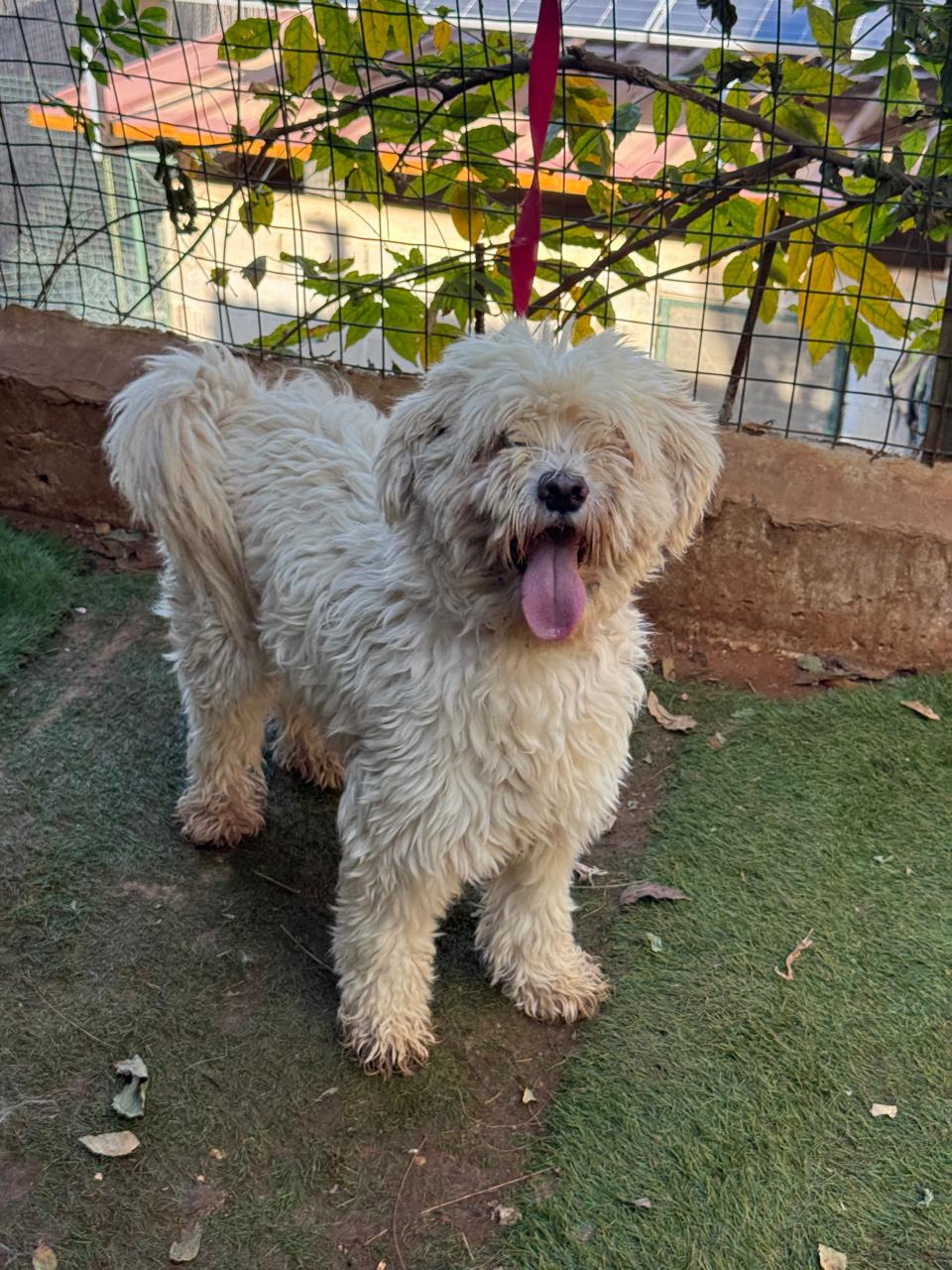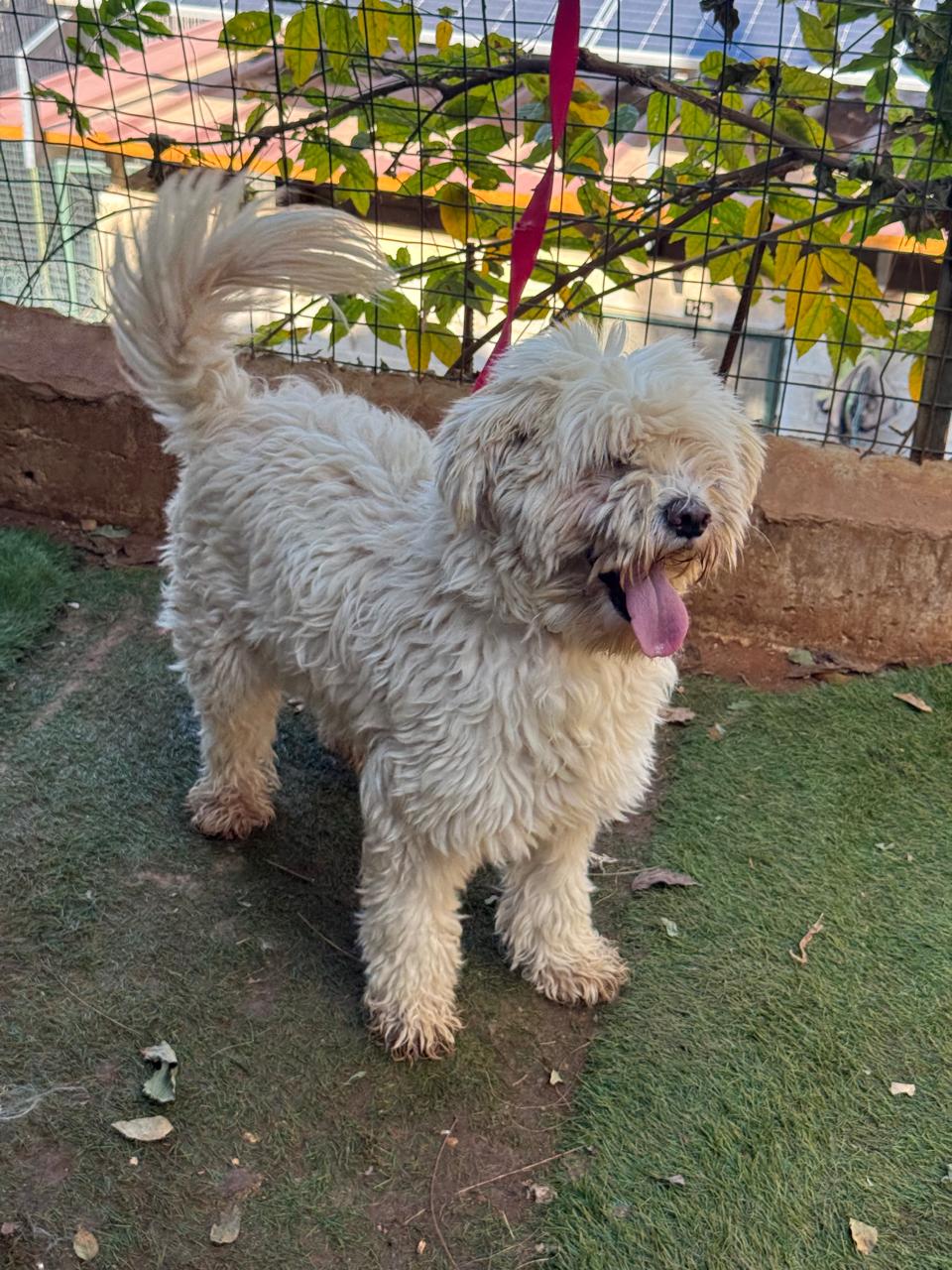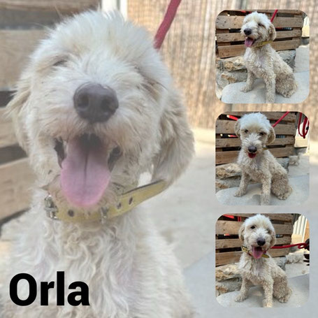 ORLA est une chienne de type croisée bichon, non lof, couleur blanche.
