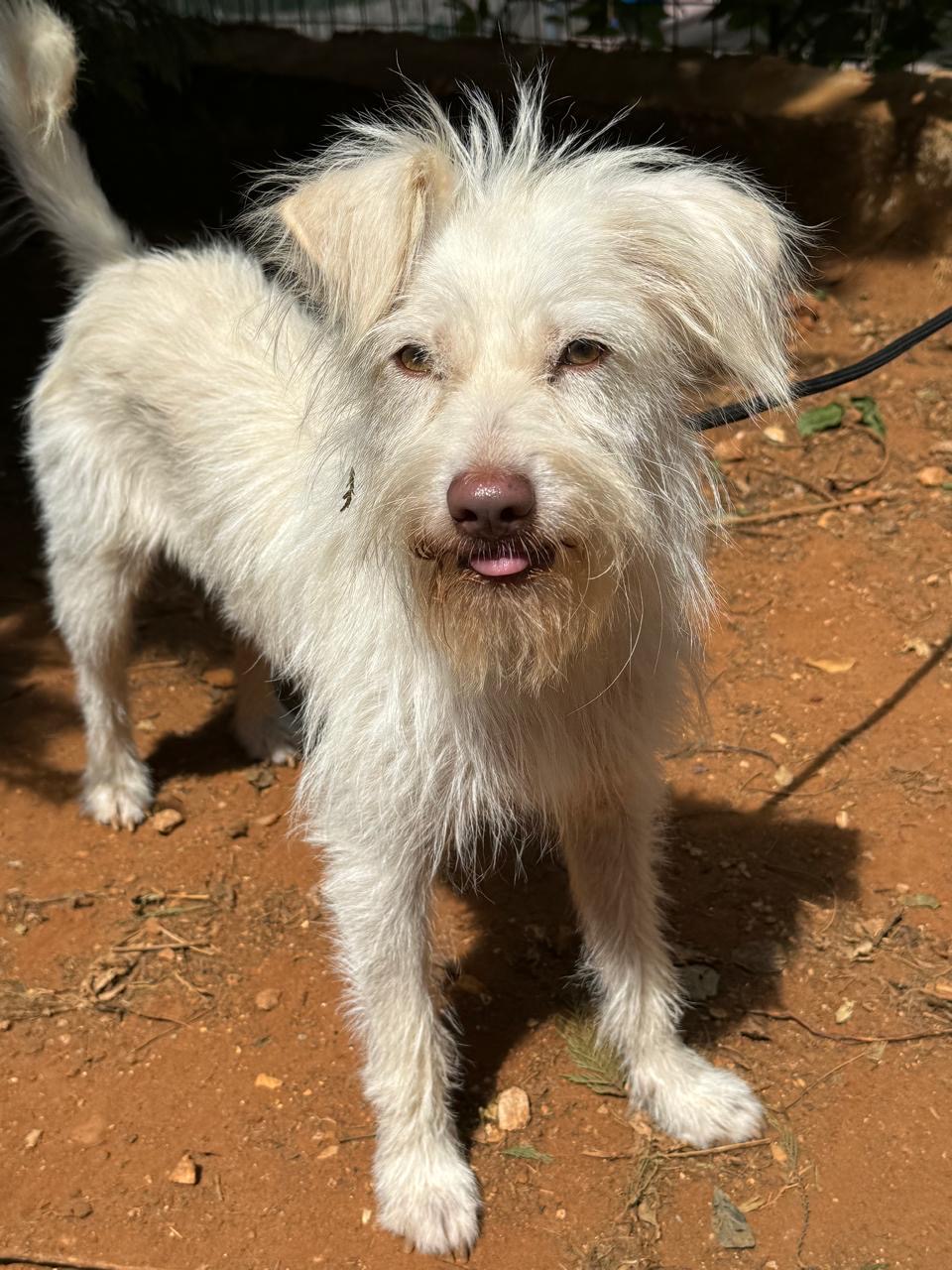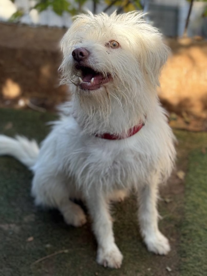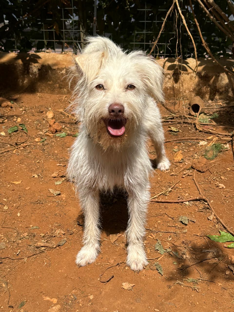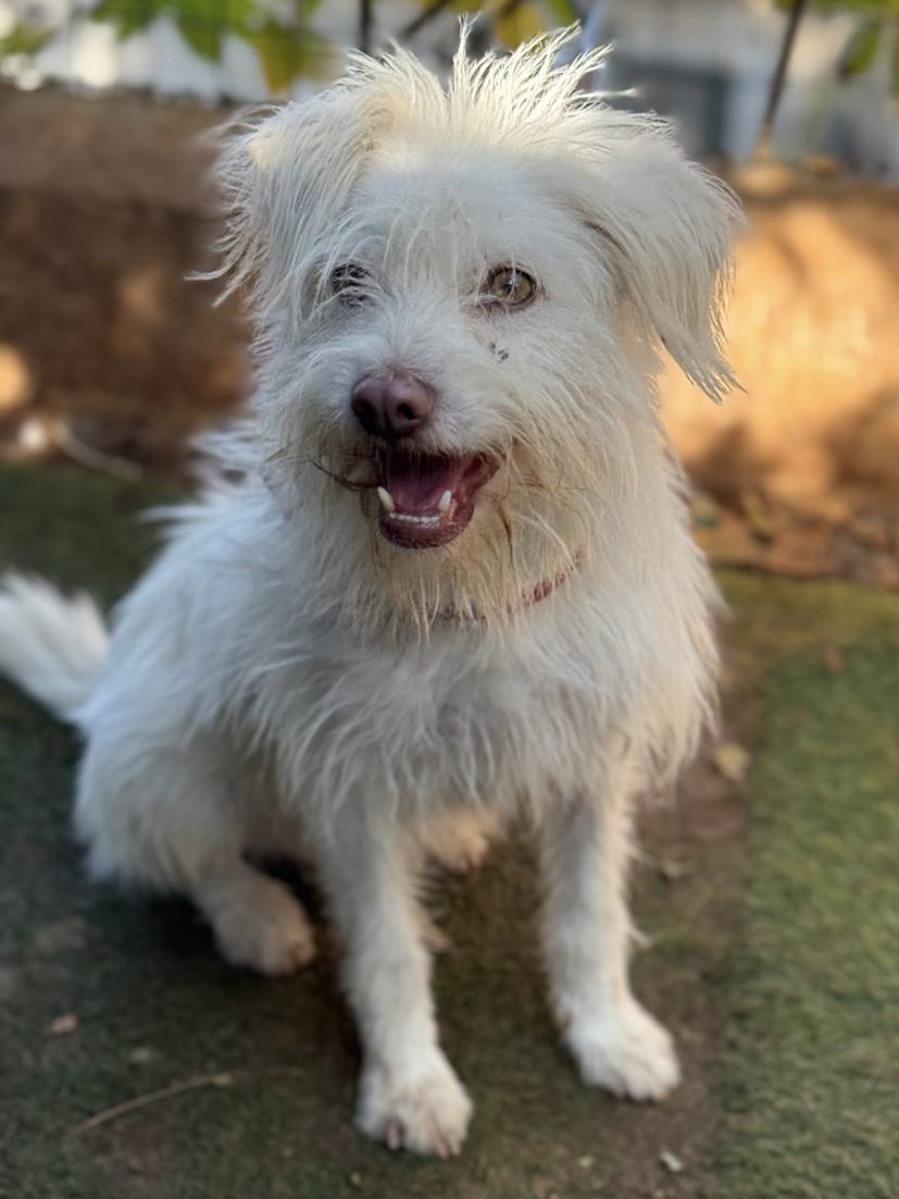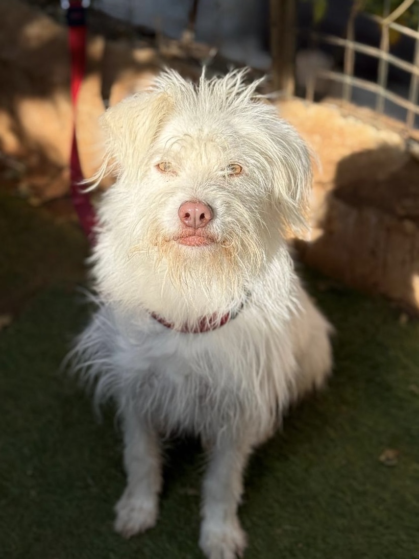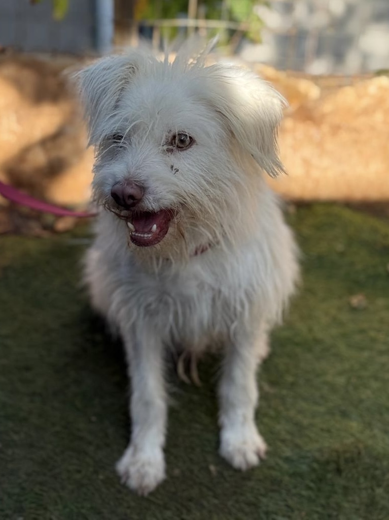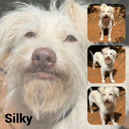 SILKY est un chien de type croisé terrier, non lof, couleur blanc.