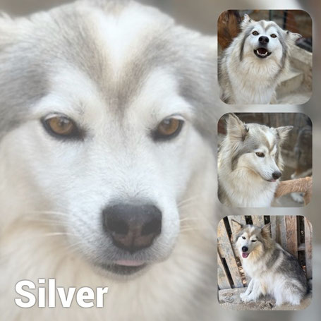 SILVER est une chienne de type Husky, non lof, couleur grise et blanche.