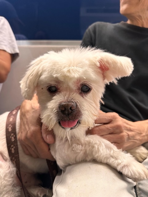 SNOOPY est un chien de type croisé Shitzu, non lof, couleur blanc.