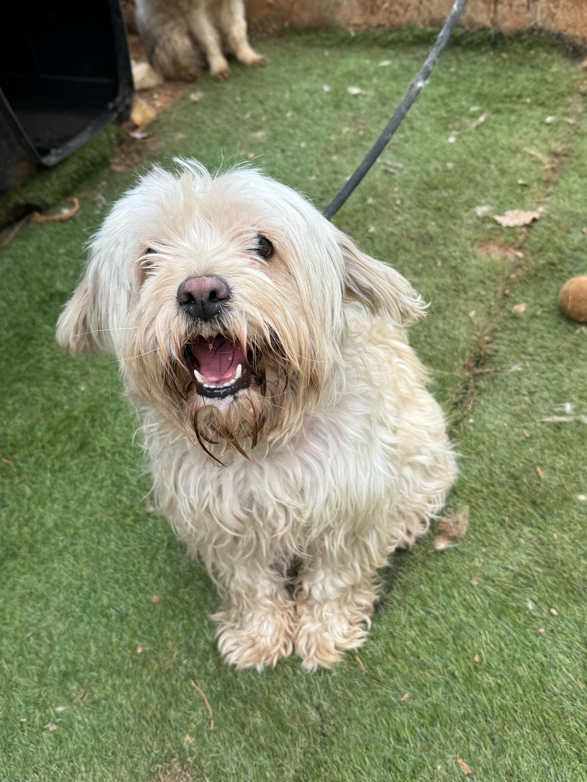 SPADA est une chienne de type croisée bichon, non lof, couleur blanche.