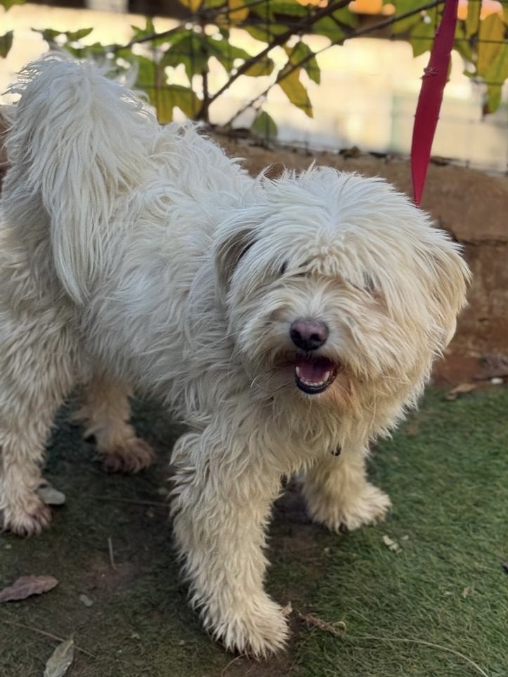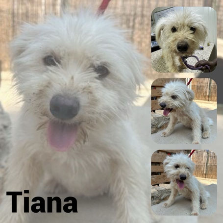 TIANA est une chienne de type croisée bichon, non lof, couleur blanche.