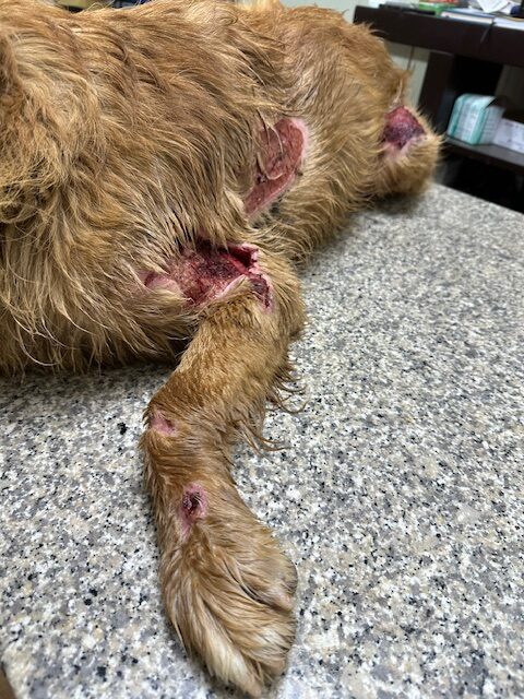 ZANE a été trouvé abandonné, dans le sud du Liban. Il a une triste histoire parce qu’il a volontairement été attaché et trainé par une voiture, jusqu’à ce que le pauvre chien ait la peau à vif.
