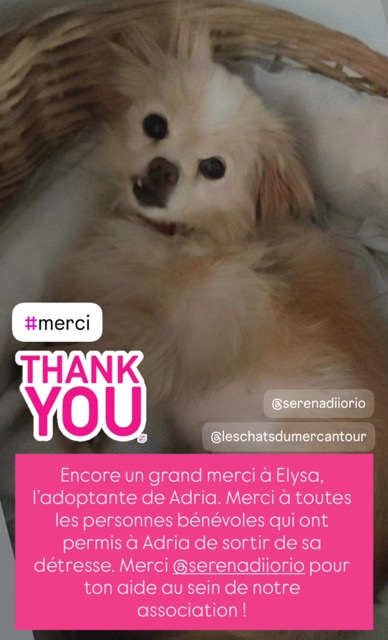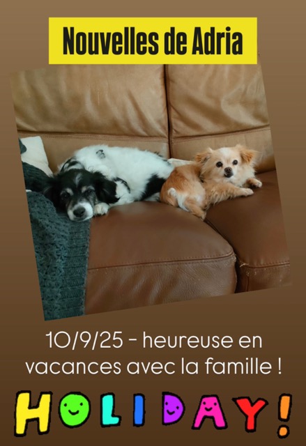 NB : merci de mûrement réfléchir à l’engagement moral et financier qu’une adoption représente (santé, factures vétérinaires, entretien, alimentation environ 1000 euros par an, absences, vacances ou autres = pension, accessoires quotidiens, éducation, etc.). Merci aussi de bien vous renseigner au préalable sur les caractéristiques de la race concernée. Un chien vit en moyenne 15 ans. C’est un être sensible avec tout ce que cela implique, ce n’est pas un objet ni un être qui agit sur commande.