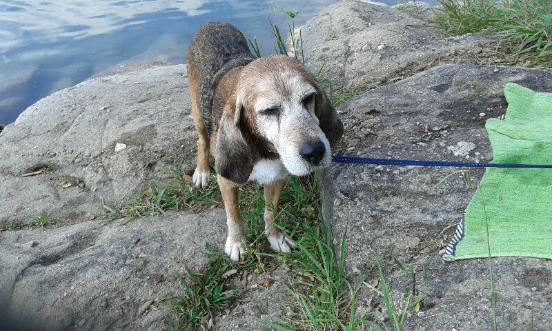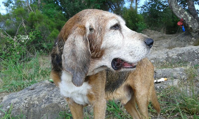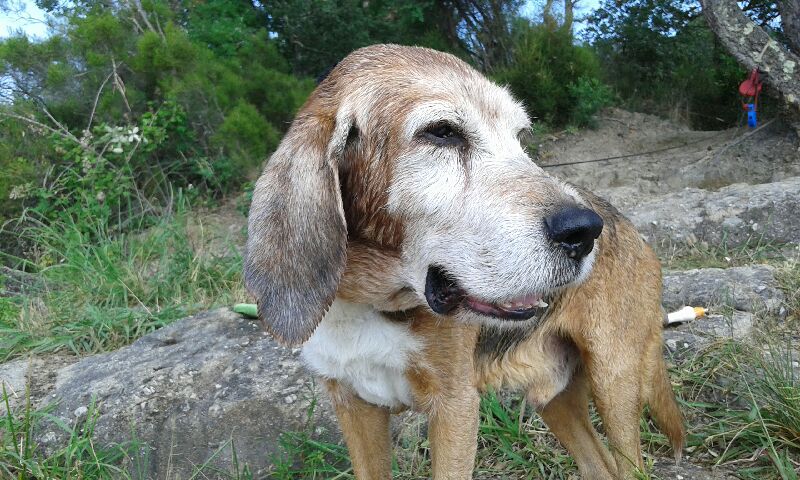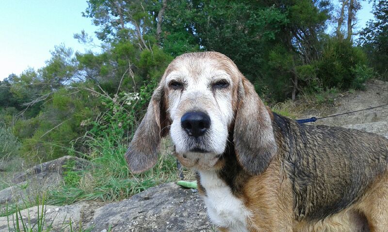 C’est un chien qui apprécie l’activité physique, malgré son âge, il a besoin de balades dans la nature et renifler toutes les bonnes odeurs !