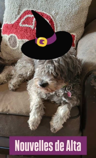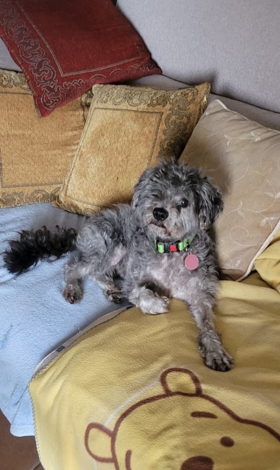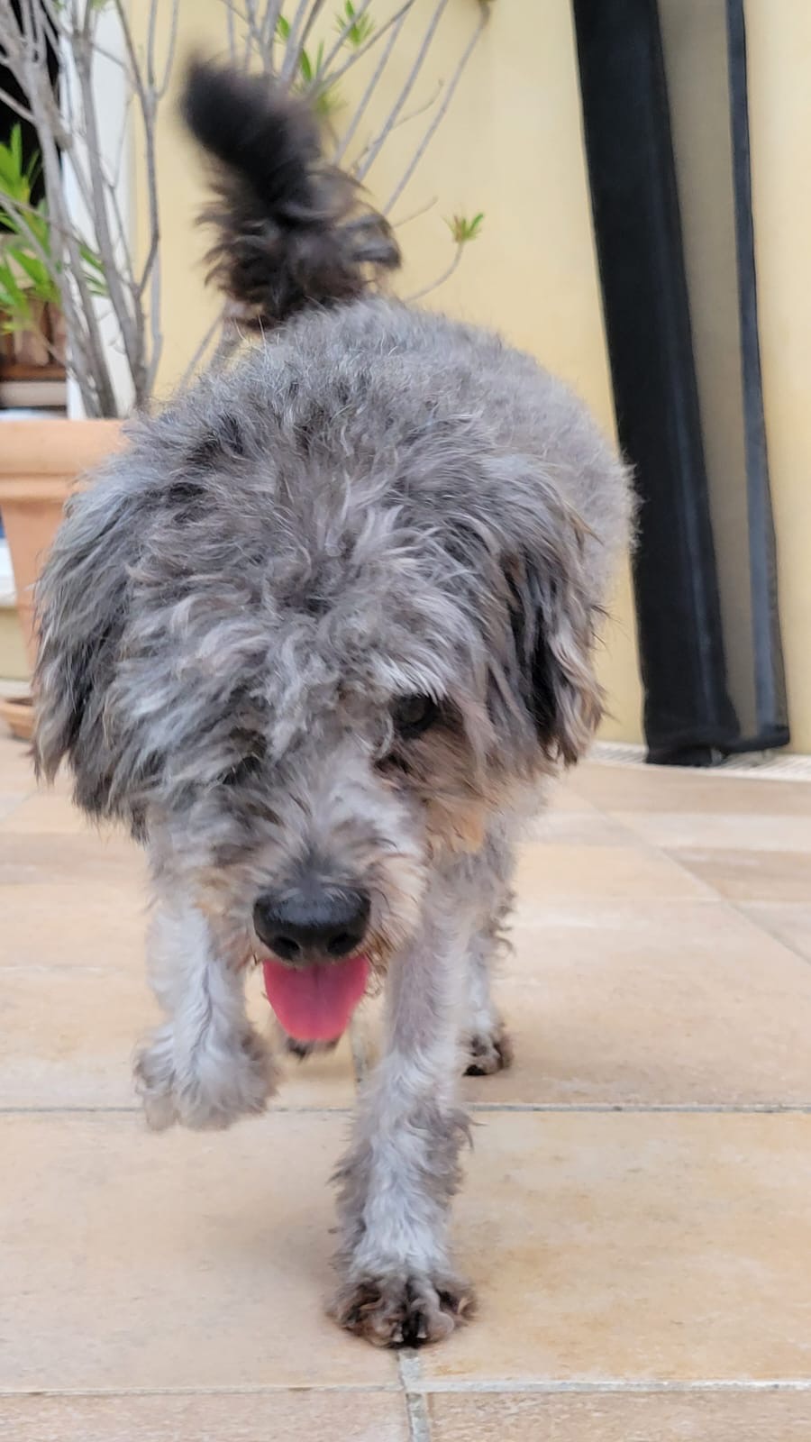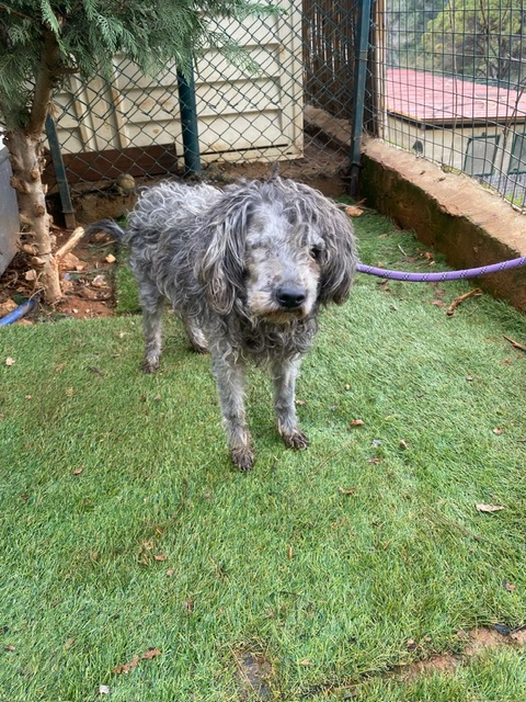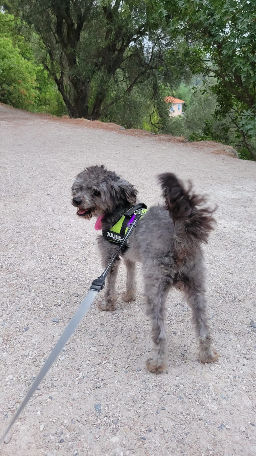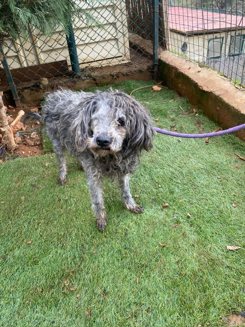 ALTA est une chienne de type croisée caniche, non lof, couleur grise.