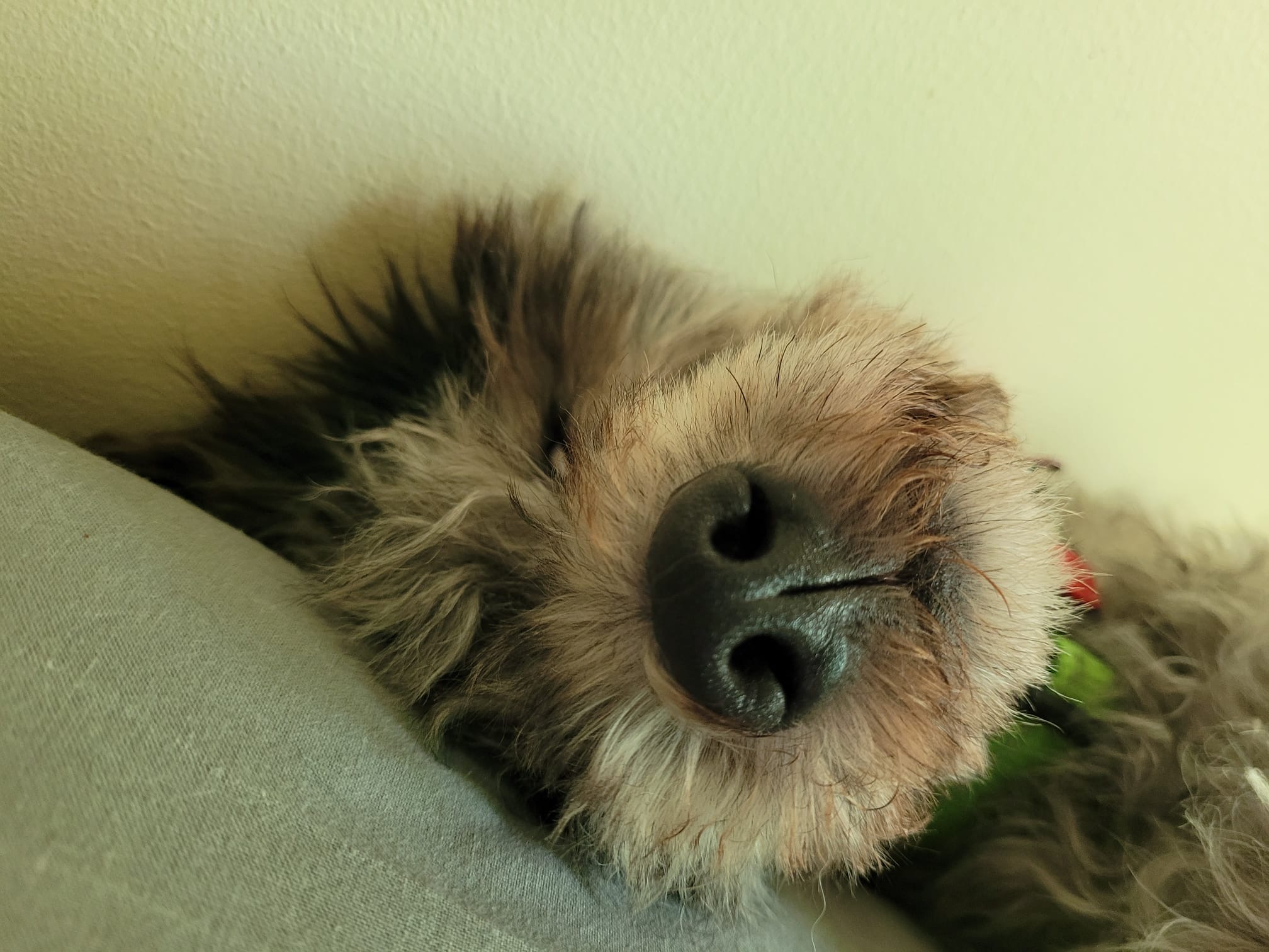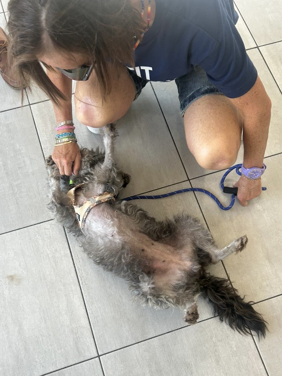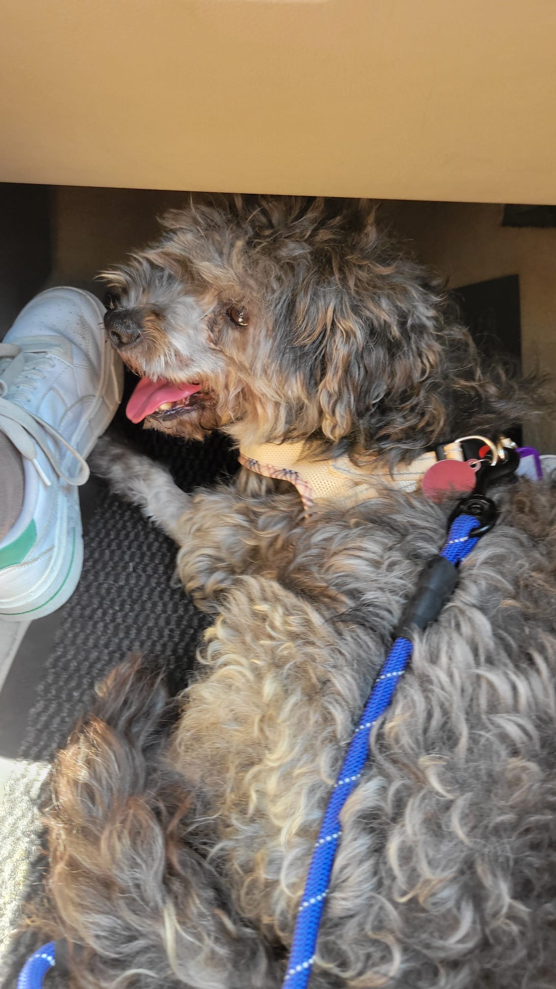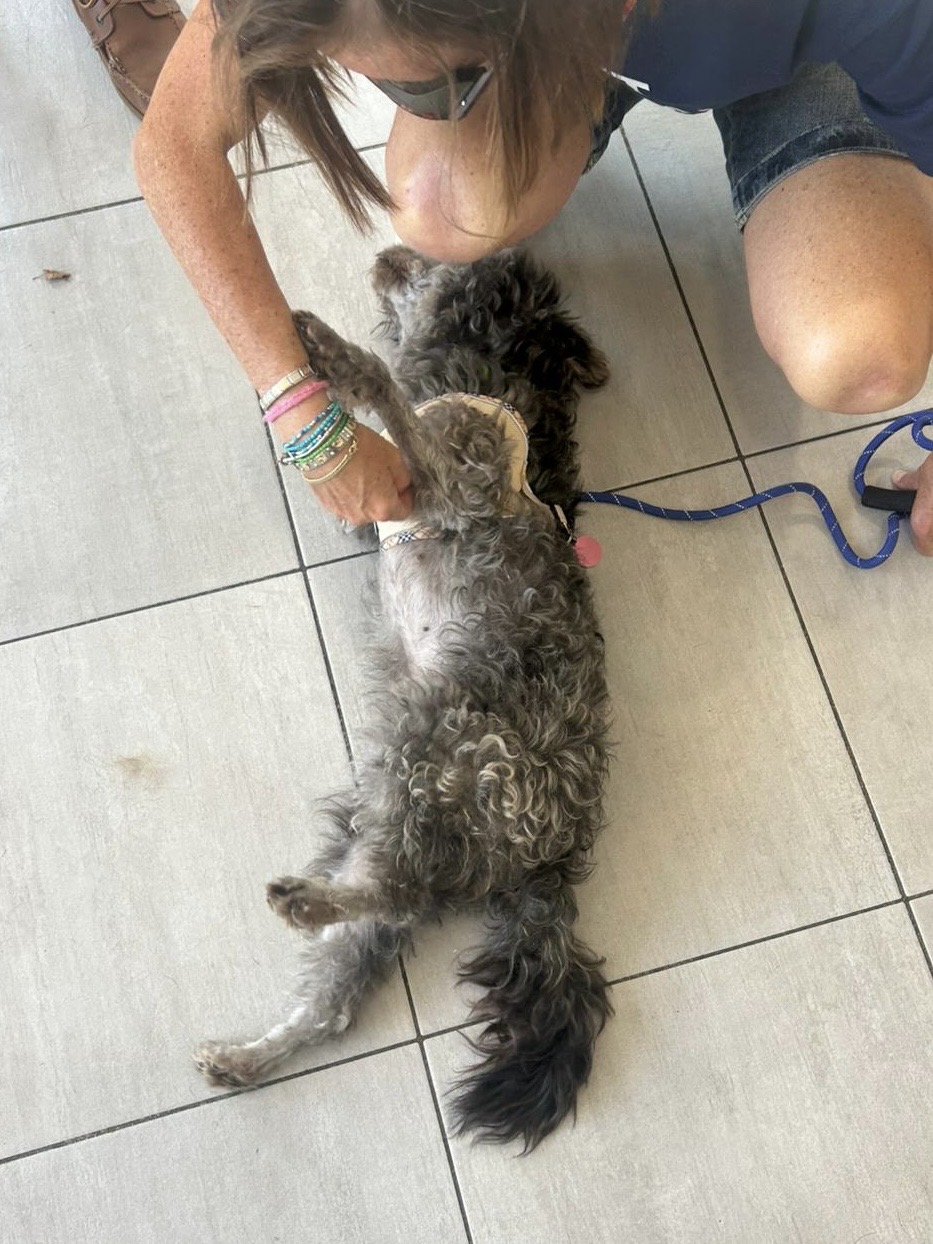 ALTA est une chienne de type croisée caniche, non lof, couleur grise.