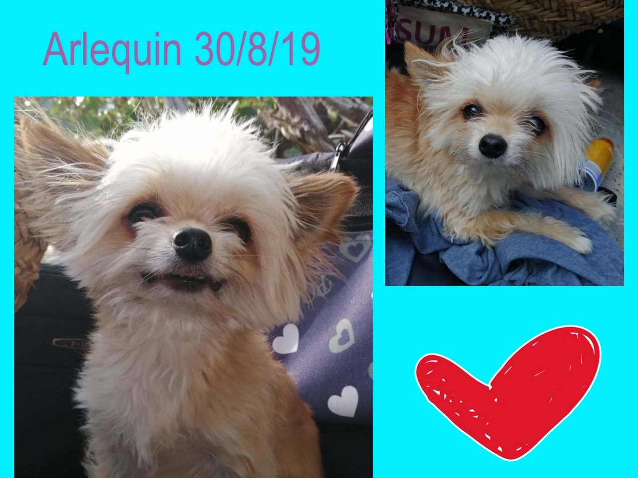 ARLEQUIN a vécu chez un couple qui s’est laissé dépasser par le fait que leurs chihuahuas n’étaient pas stérilisés, et ils se sont retrouvés avec une quinzaine de chiens. Leurs tentatives de placer eux-mêmes les divers chiots chez des familles via internet se sont trop souvent avérées être de mauvais placements.