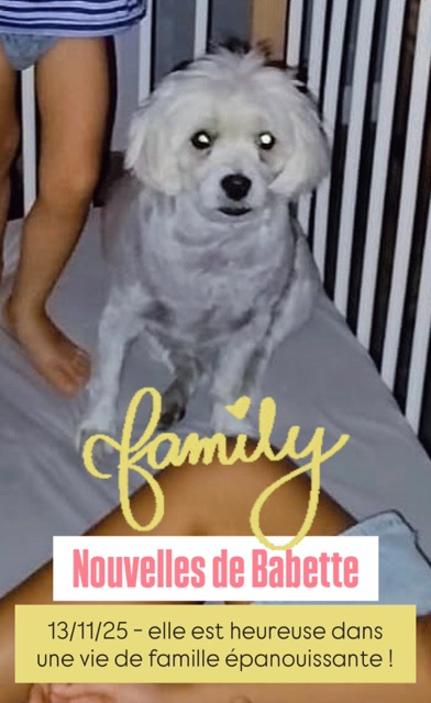 BABETTE avait été adoptée au sein de notre association il y a un peu moins d’un an. Malheureusement, son adoptante a déclaré un problème de santé et afin de lui assurer une vie en accord avec ses besoins, la décision de la mettre à l’adoption a été prise.