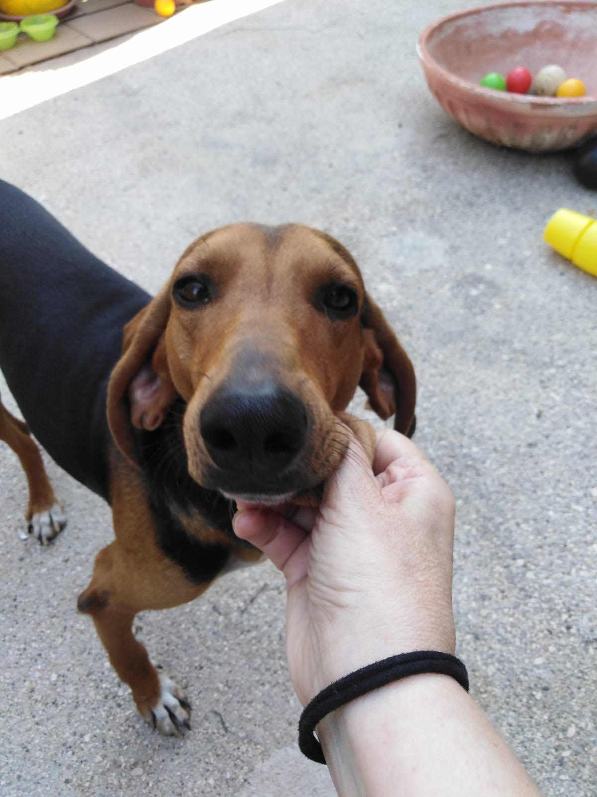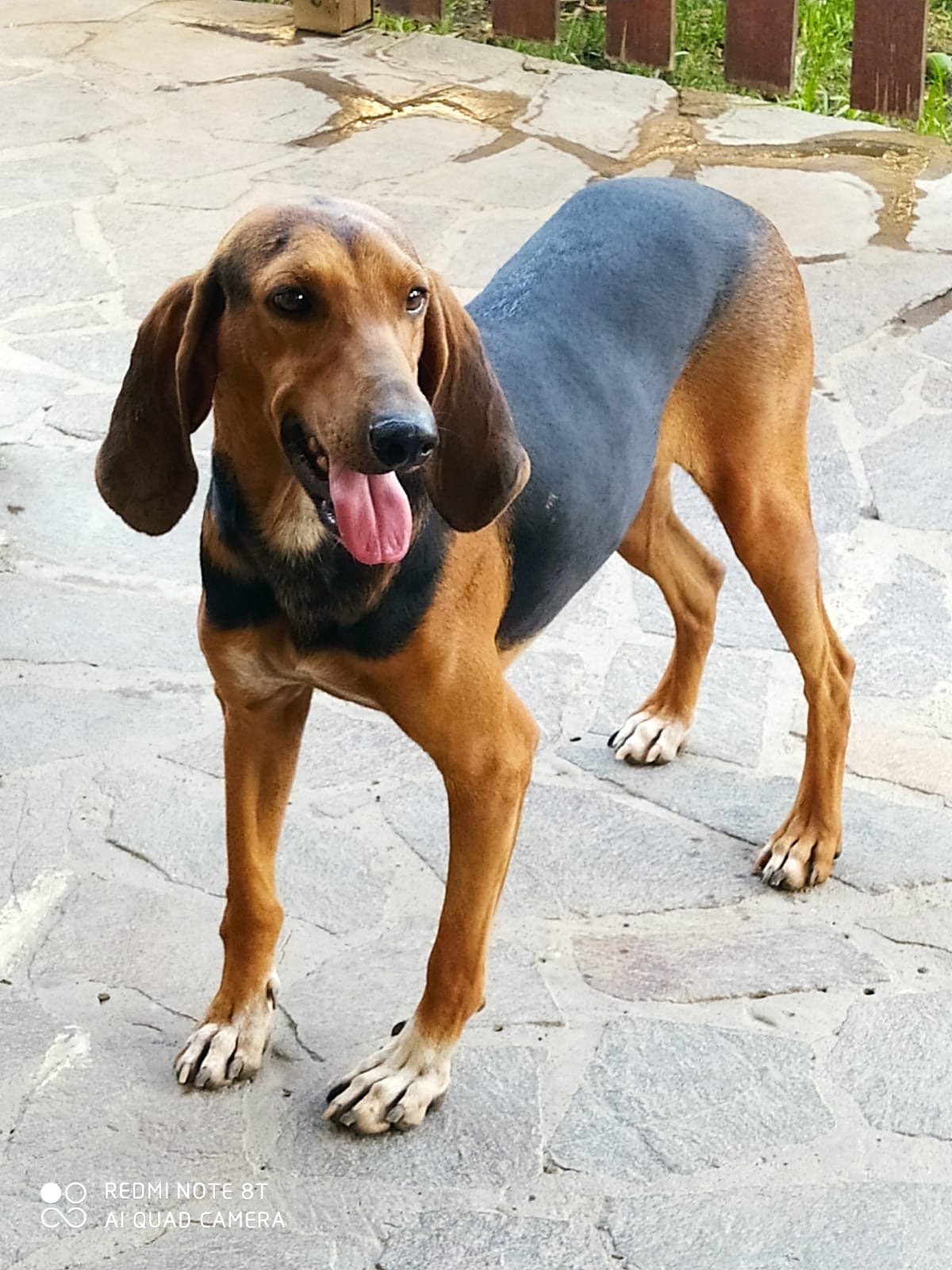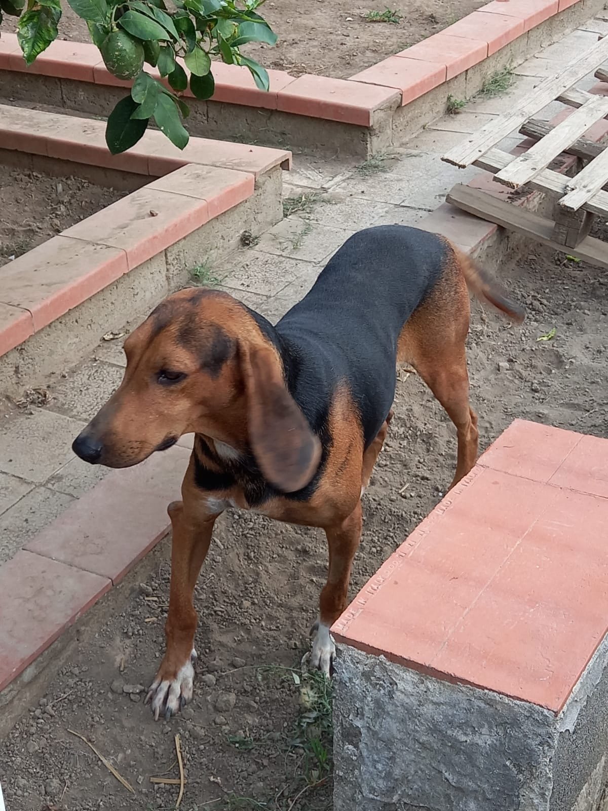 BANANA est un chien de race Chien Courant Italien, non lof, couleur noir et feu.