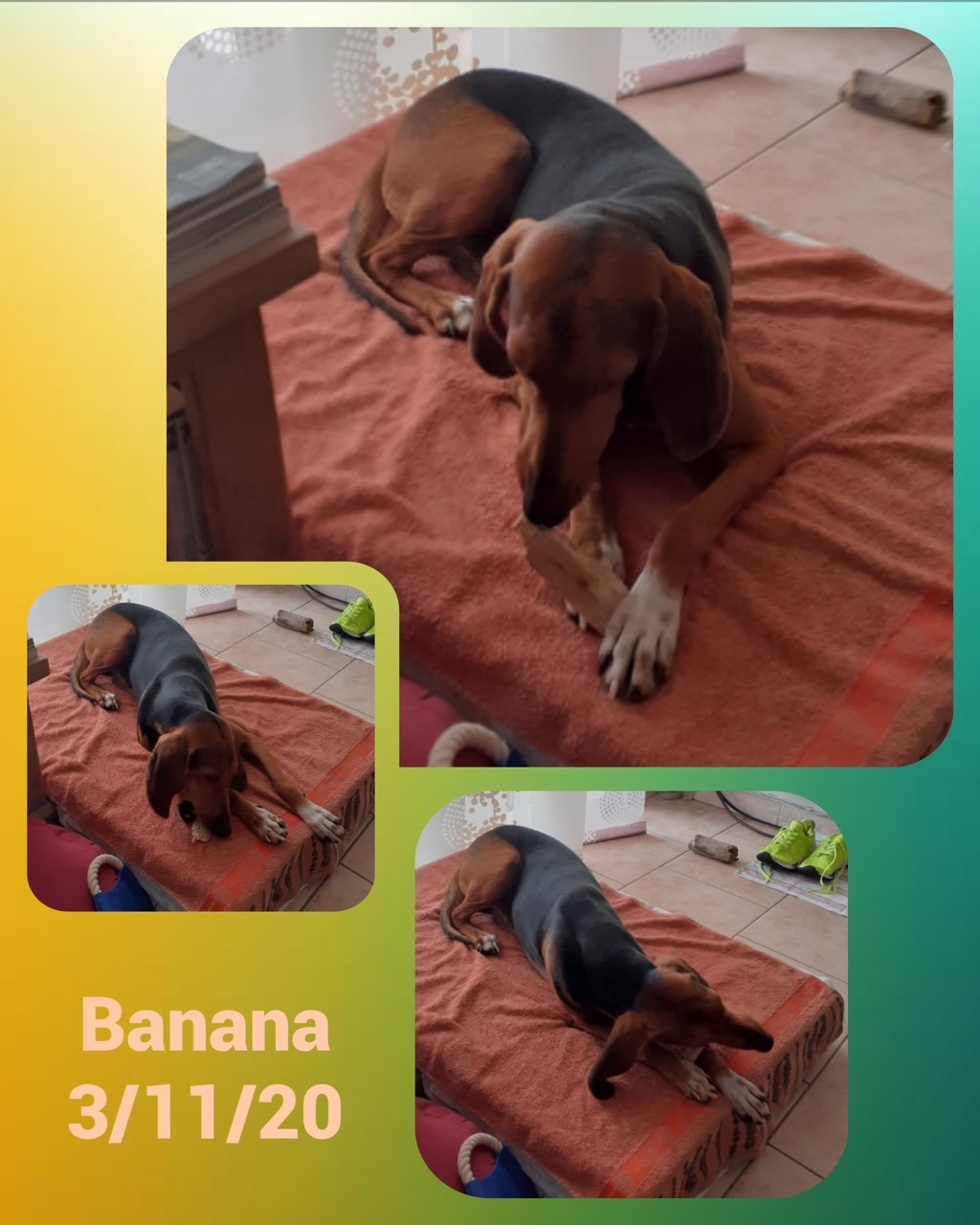 Banana est un chien très doux, très sensible et très gentil.