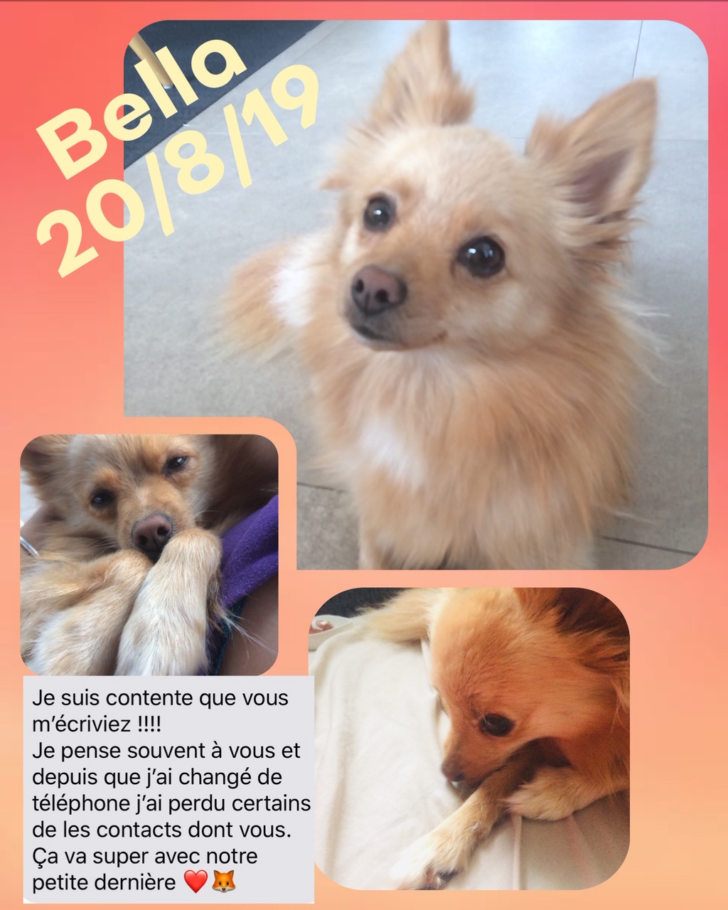 BELLA a été achetée en élevage, par une famille vivant en appartement sur Paris. Ayant déjà un autre Spitz, ils se sont dit que ce serait une bonne idée d'en avoir un deuxième. Pas du tout! Ils disent que leurs première chienne est jalouse et ne souhaite pas garder Bella.