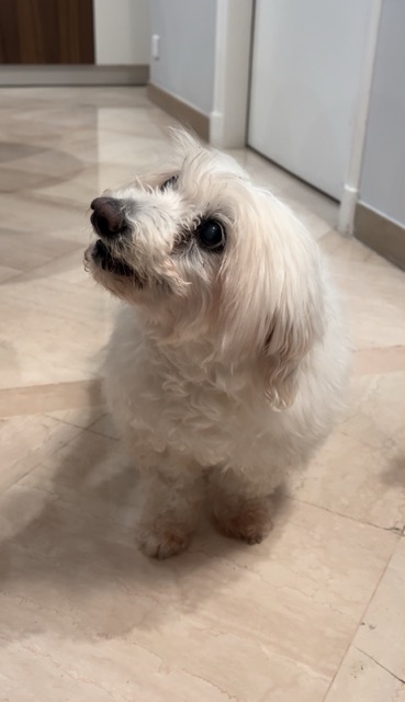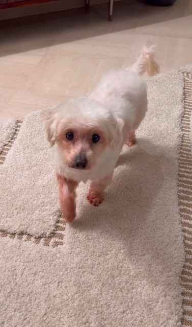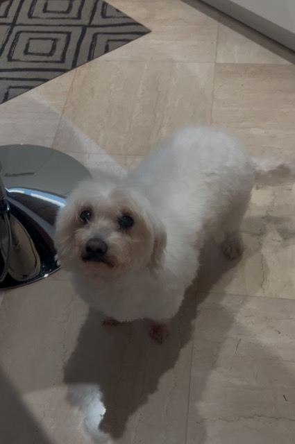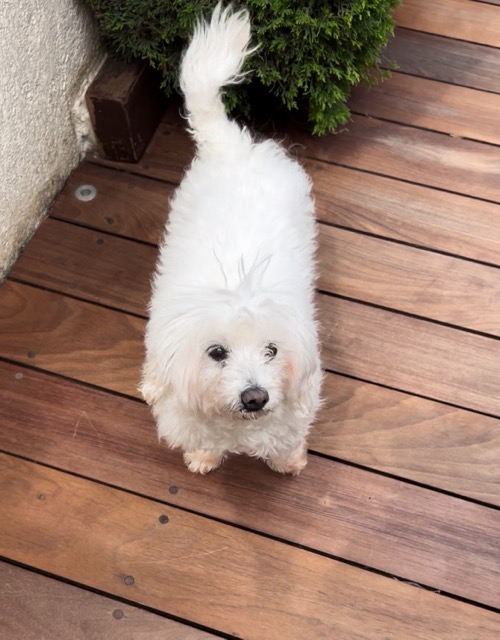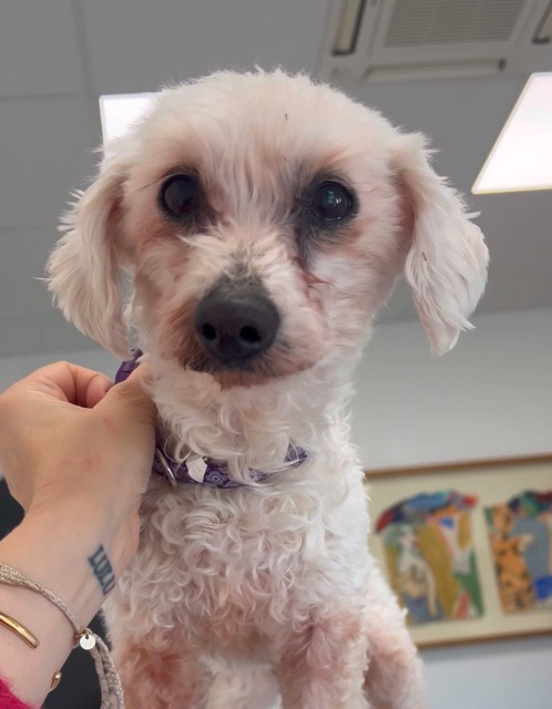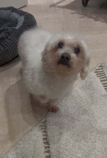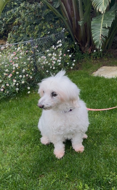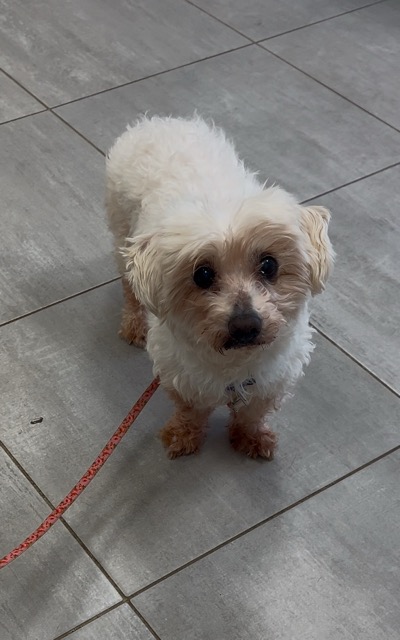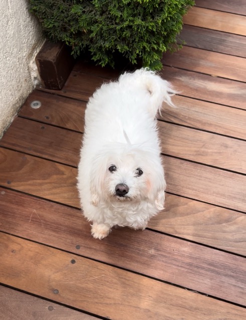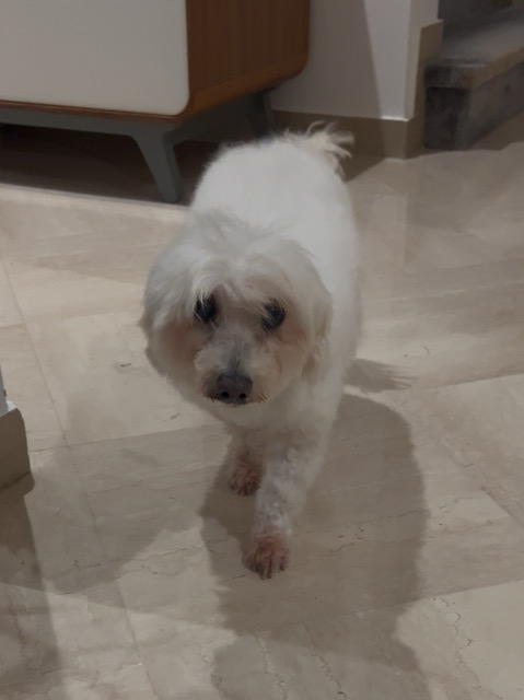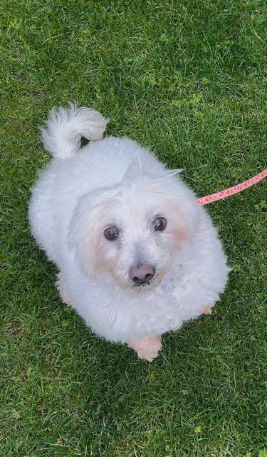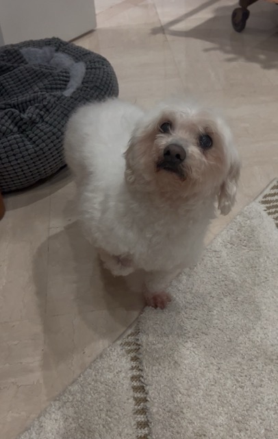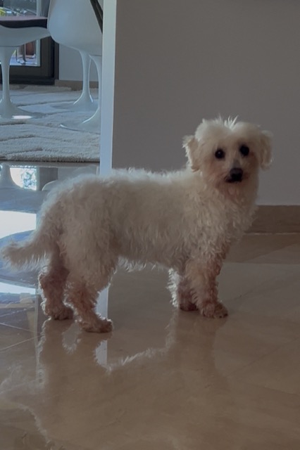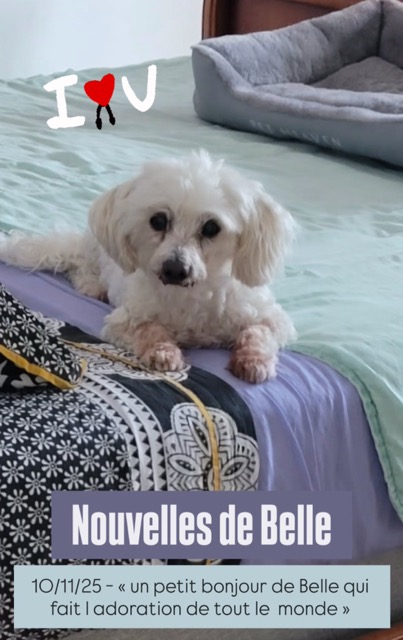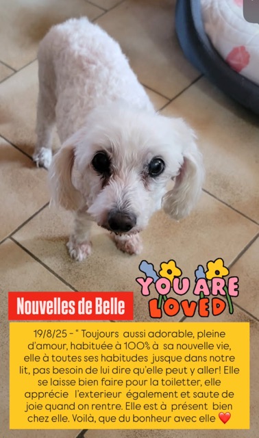 BELLE est une chienne de type Bichon, non lof, couleur blanc.