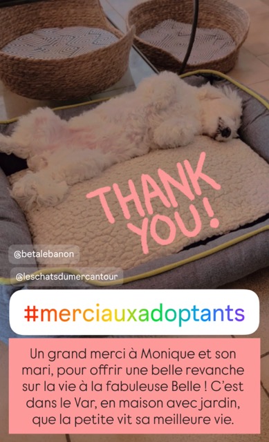 NB : merci de mûrement réfléchir à l’engagement moral et financier qu’une adoption représente (santé, factures vétérinaires, entretien, alimentation environ 1000 euros par an, absences, vacances ou autres = pension, accessoires quotidiens, éducation, etc.). Merci aussi de bien vous renseigner au préalable sur les caractéristiques de la race concernée. Un chien vit en moyenne 15 ans. C’est un être sensible avec tout ce que cela implique, ce n’est pas un objet ni un être qui agit sur commande.
