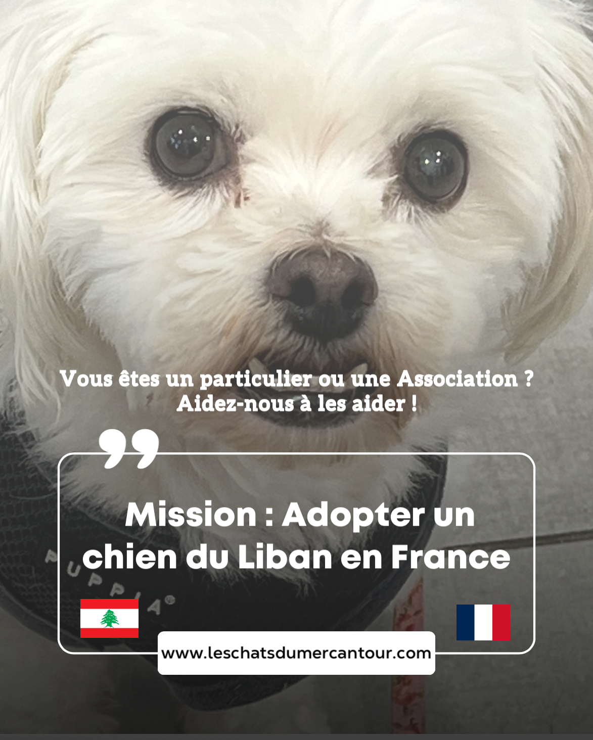 NB : merci de mûrement réfléchir à l’engagement moral et financier qu’une adoption représente (santé, factures vétérinaires, entretien, alimentation environ 600 euros par an, absences, vacances ou autres = pension, accessoires quotidiens, éducation, etc.). Merci aussi de bien vous renseigner au préalable sur les caractéristiques de la race concernée. Un chien vit en moyenne 15 ans. C’est un être sensible avec tout ce que cela implique, ce n’est pas un objet ni un être qui agit sur commande.