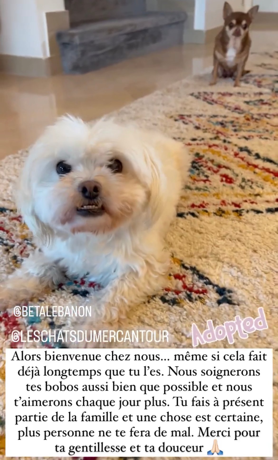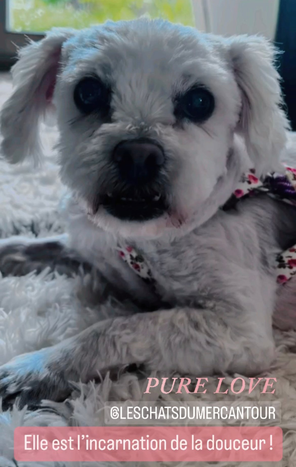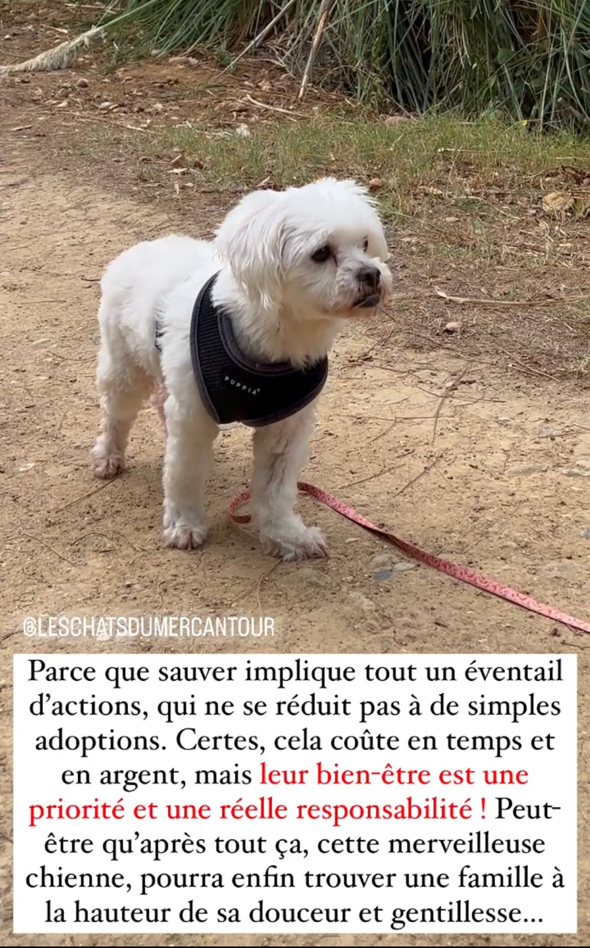 * Famille souhaitée : des adoptants très calmes, doux et soigneux, disponibles en temps et en attentions, où l’amour et l’affection règnent. Il sera important de lui offrir des petites activités et sorties quotidiennes.