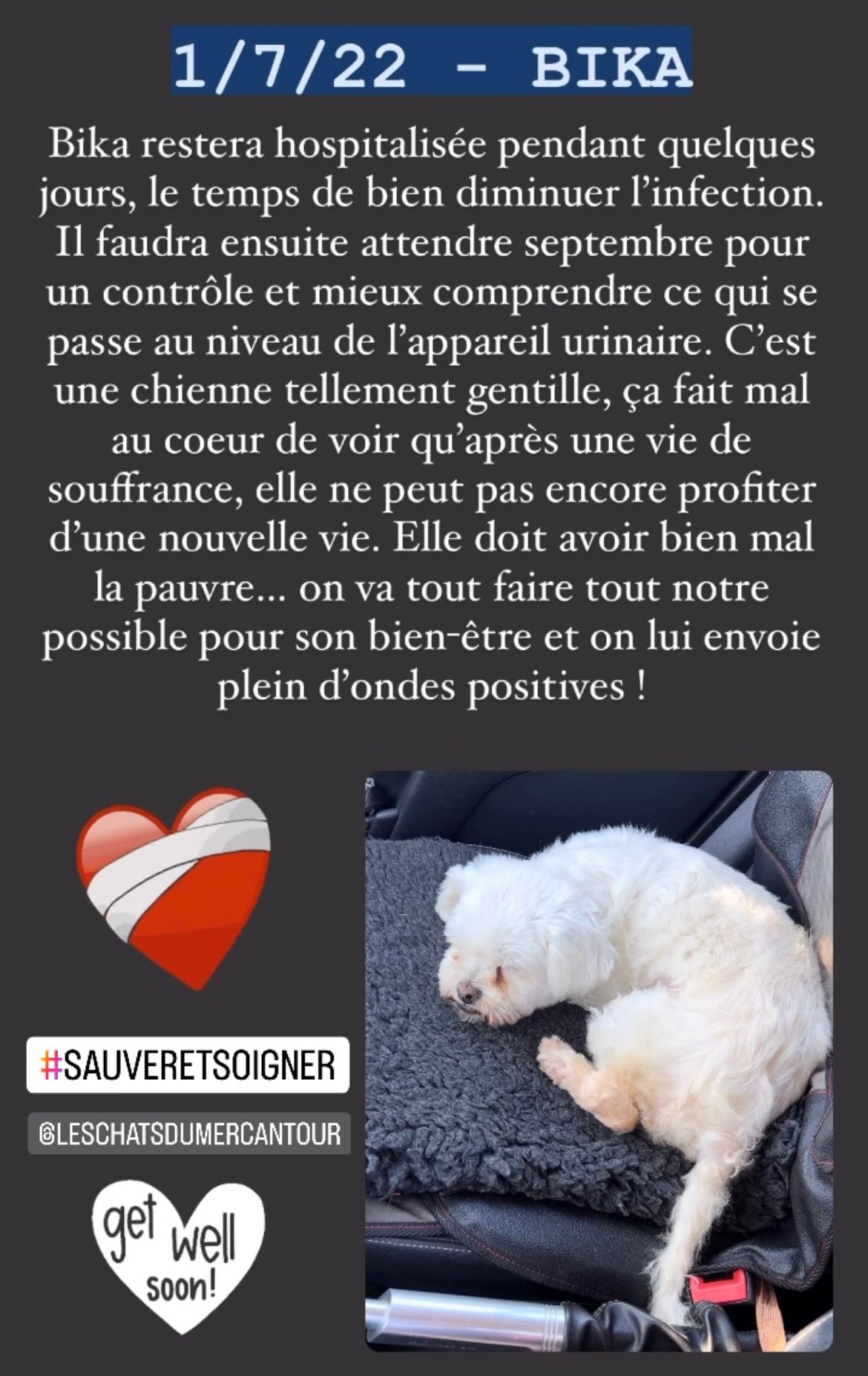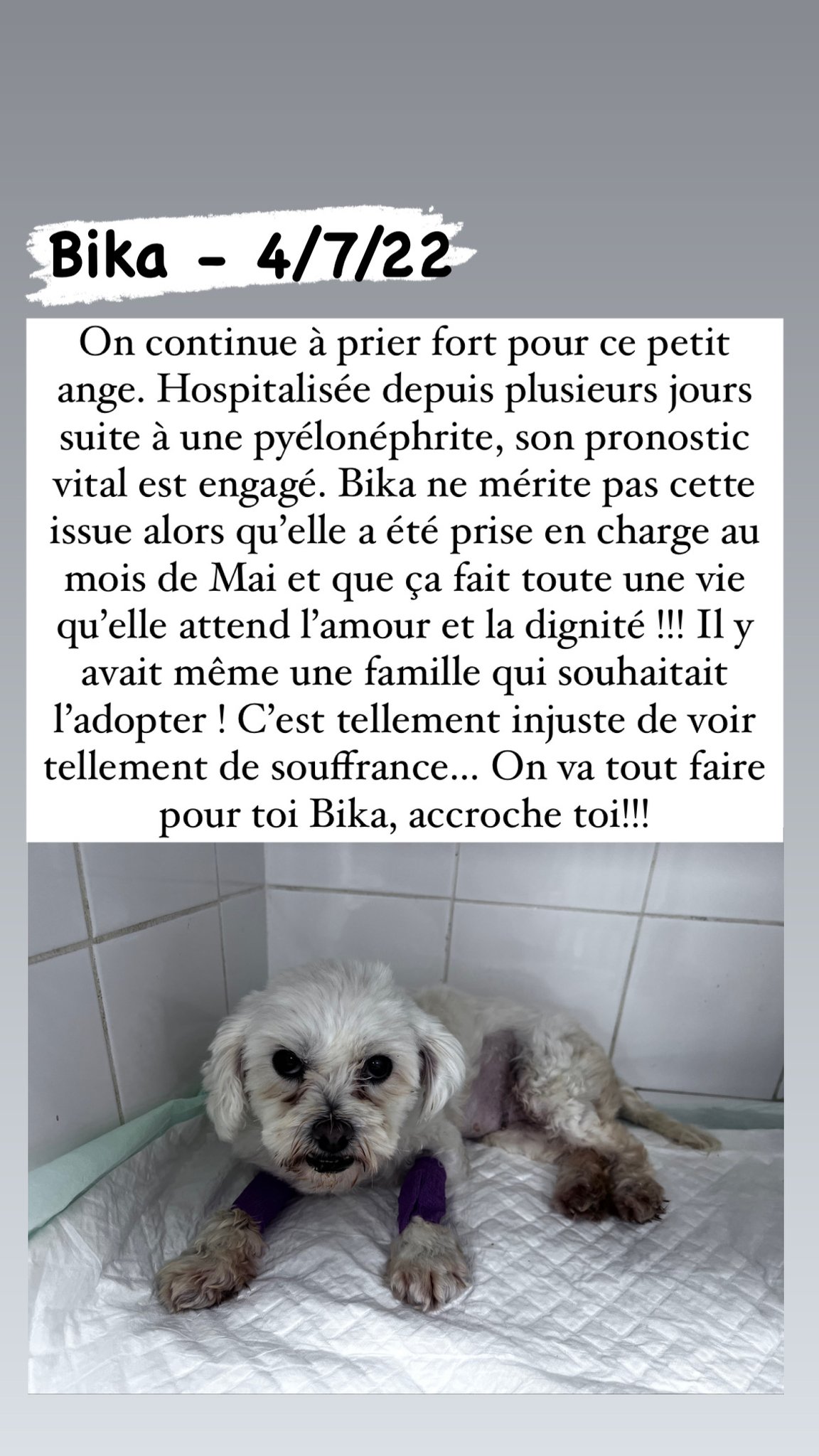 * Bika va être soumise à une chirurgie au mois d’Octobre 2022, afin de la soulager d’une malformation du rein gauche. Elle n’est donc pas adoptable pour le moment, et nous attendrons qu’elle soit remise de sa chirurgie avant d’envisager un placement *