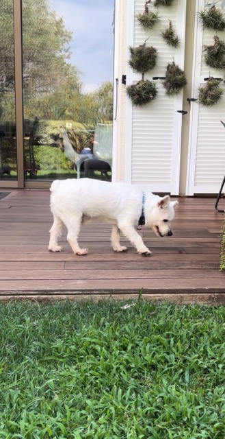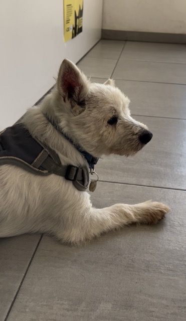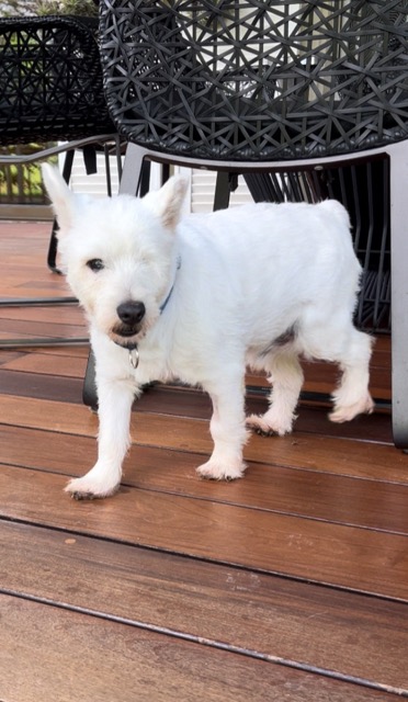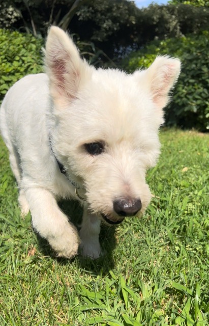 BOOMIE est un chien de type West Highland Terrier, non lof, couleur blanc.