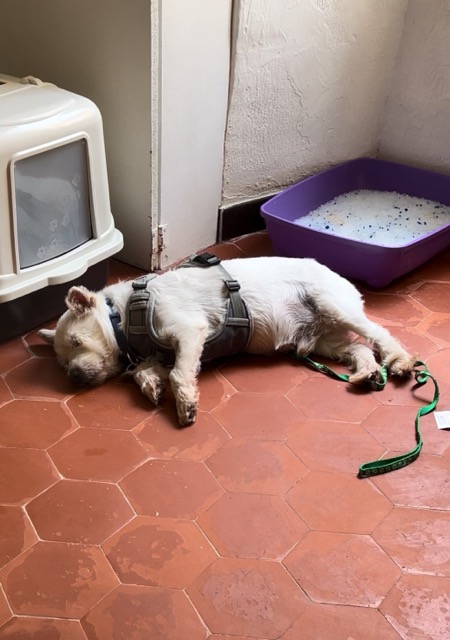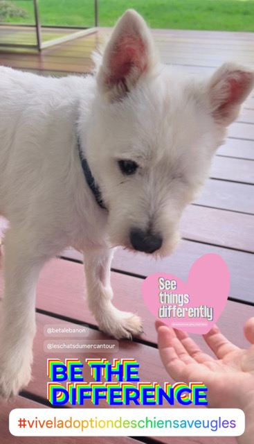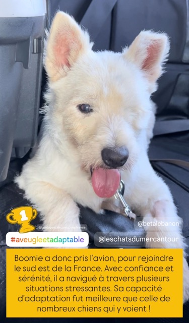 Malgré la cécité, c’est un chien qui prend du plaisir à suivre son maitre partout, il s’adapte et il est curieux de l’environnement.