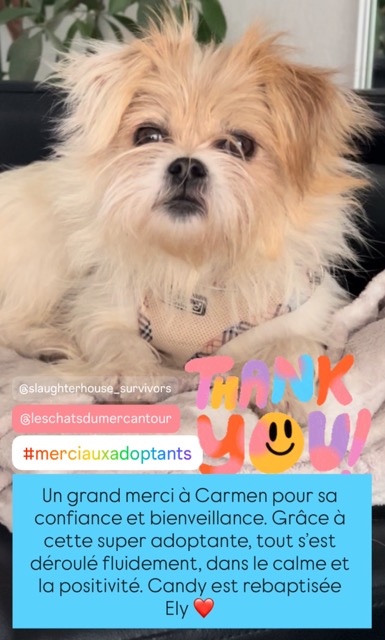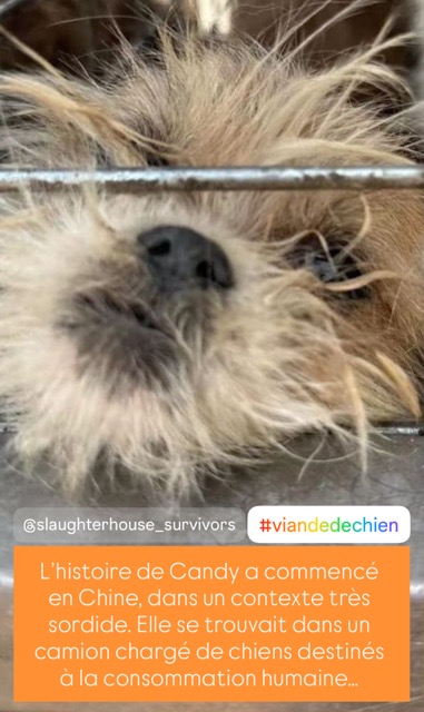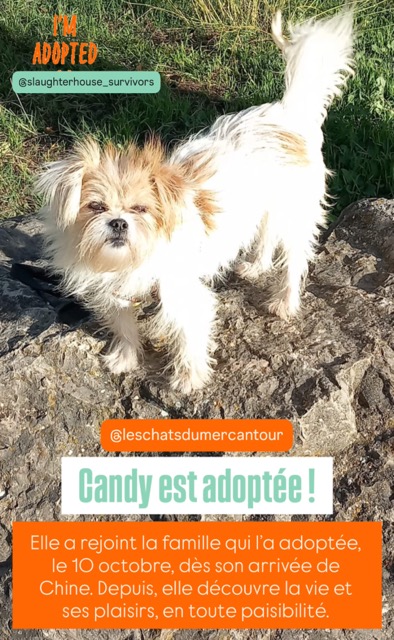 CANDY fait partie des chiens sauvés par l’association HARBIN SHS, en Chine. Tous les chiens sauvés là-bas, étaient destinés à la consommation humaine et ce, de façon extrêmement barbare.