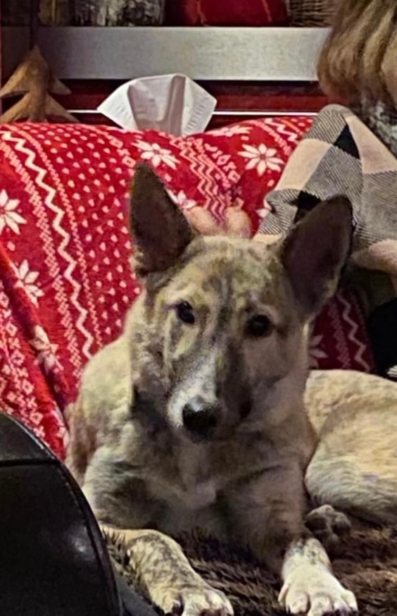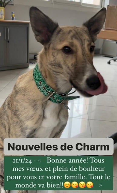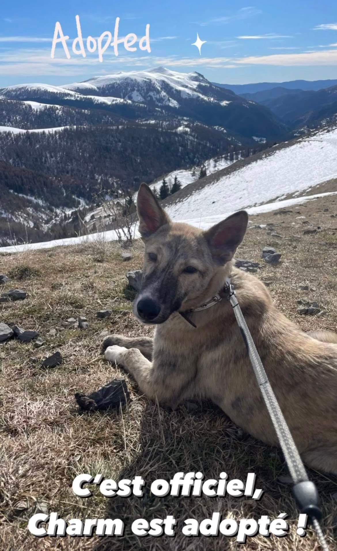 CHARM est un chien de type croisé Berger, non lof, couleur bringé.