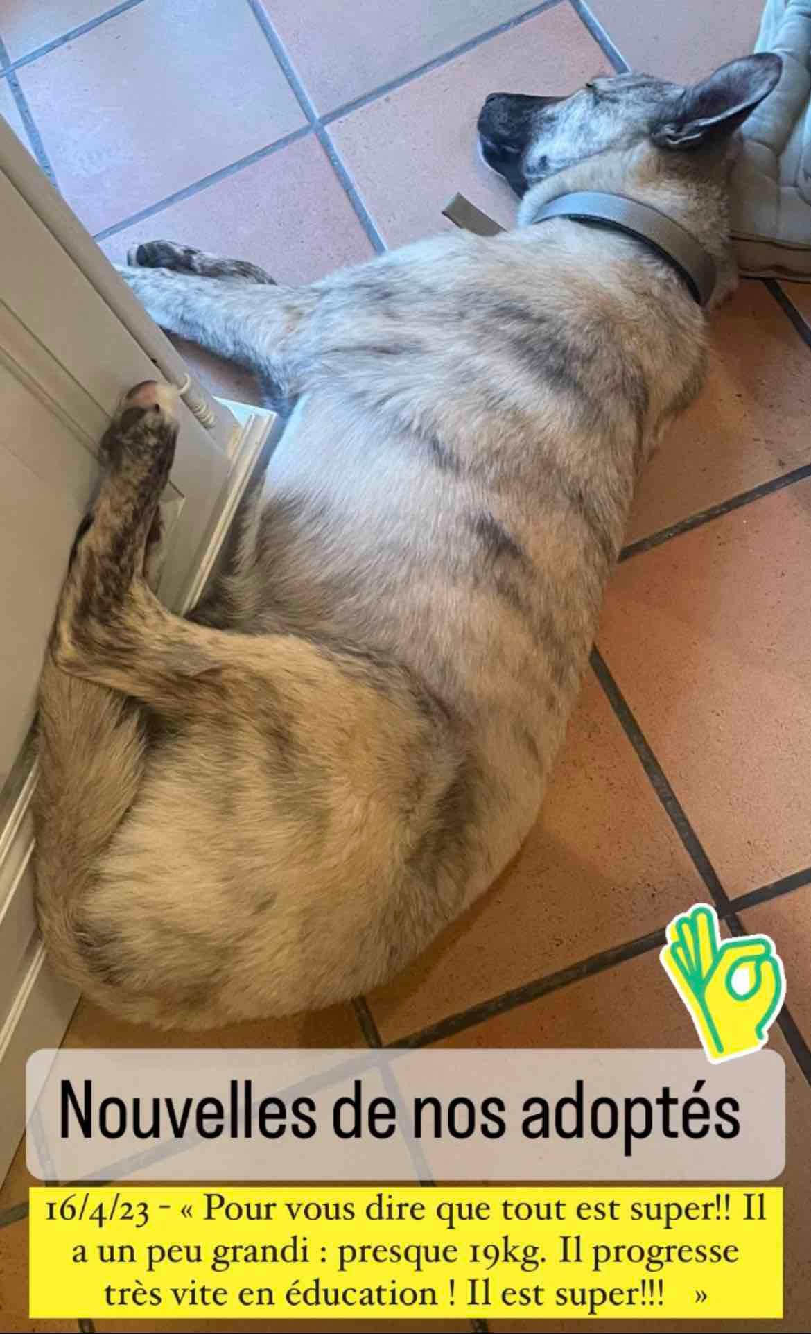 NB : merci de mûrement réfléchir à l’engagement moral et financier qu’une adoption représente (santé, factures vétérinaires, entretien, alimentation environ 800 euros par an, absences, vacances ou autres = pension, accessoires quotidiens, éducation, etc.). Merci aussi de bien vous renseigner au préalable sur les caractéristiques de la race concernée. Un chien vit en moyenne 15 ans. C’est un être sensible avec tout ce que cela implique, ce n’est pas un objet ni un être qui agit sur commande.